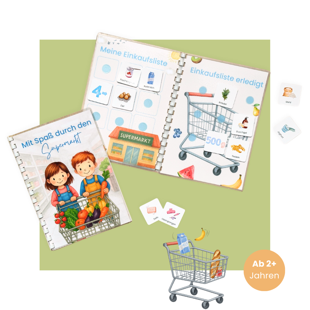 Dank klarer Kategorien – auch für Drogerie-, Kosmetik- und Marktprodukte – können Kinder aktiv mitplanen und motiviert mithelfen.Die visuellen Karten zeigen auf einen Blick, was gebraucht wird, fördern Wortschatz sowie Obst- und Gemüsekunde und bleiben durch das klappbare Design unterwegs sicher an ihrem Platz.
