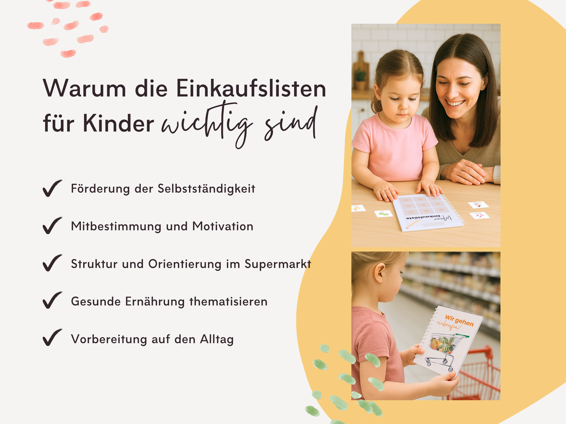 Mach das Einkaufen mit deinem Kind einfacher, strukturierter und spielerisch – mit unserem liebevoll gestalteten, Montessori-inspirierten Einkaufslisten-Set.