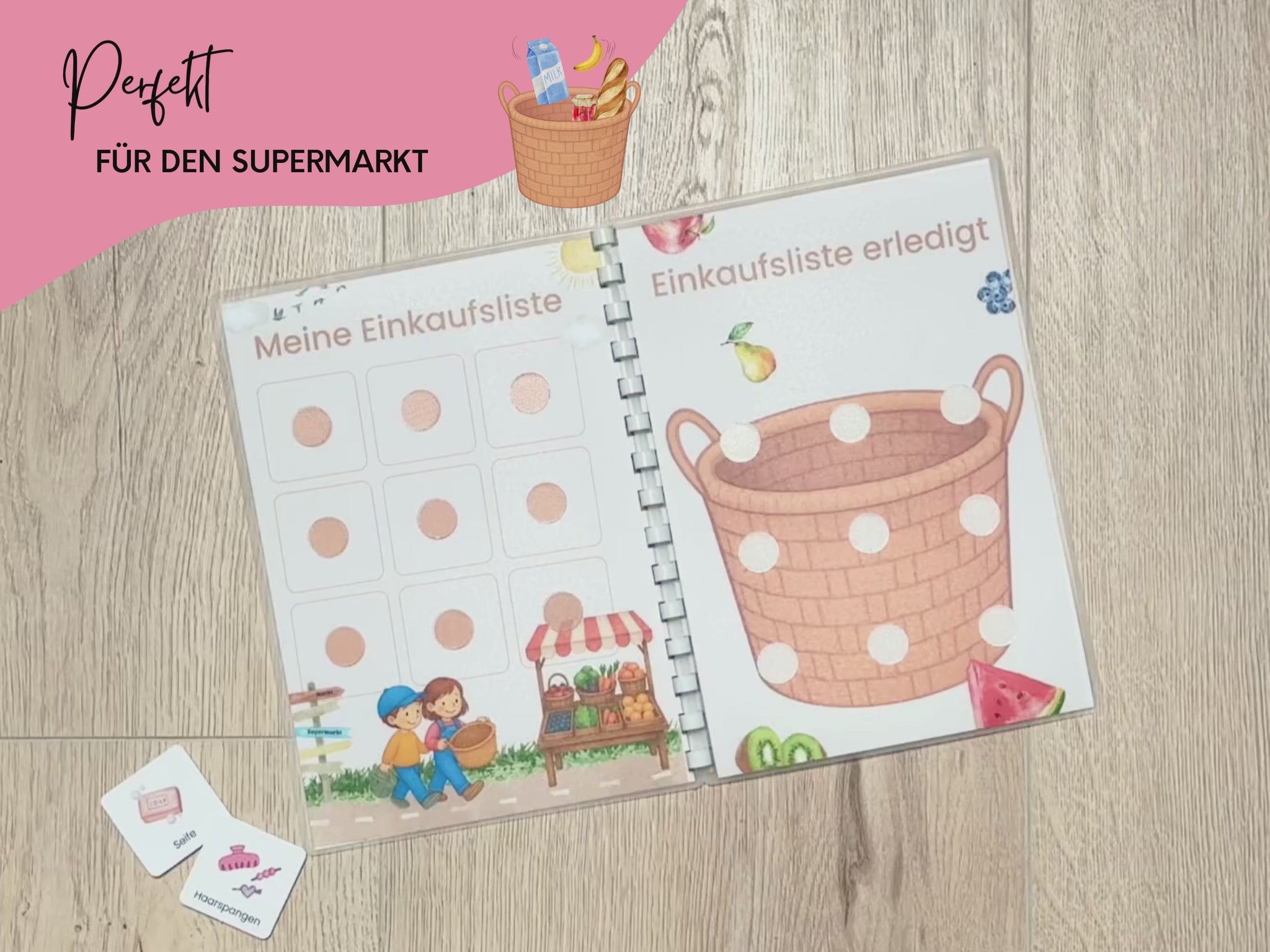 Mach das Einkaufen mit deinem Kind einfacher, strukturierter und spielerisch – mit unserem liebevoll gestalteten, Montessori-inspirierten Einkaufslisten-Set.