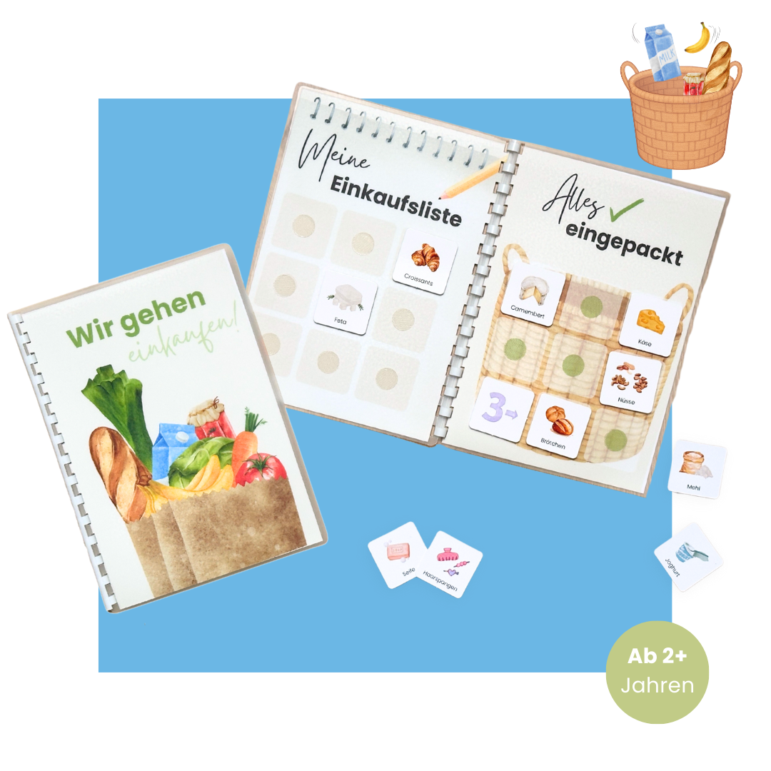Interaktiv nutzen: Dein Kind stellt die Einkaufsliste selbst zusammen und nimmt das Heft mit zum Einkaufen. So wird im Laden oder auf dem Wochenmarkt spielerisch gelernt, was wirklich gebraucht wird.