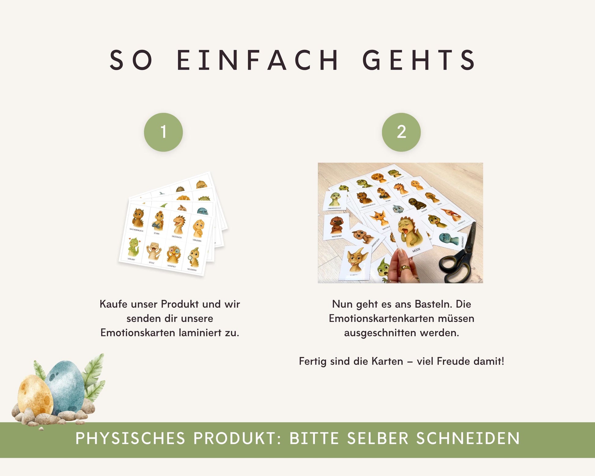 Stärke das emotionale Verständnis von Kindern mit unseren liebevoll gestalteten Montessori Emotions- und Gefühlskarten im Dinosaurier-Stil! Diese 4 PDF-Dateien beinhalten über 30 Karten mit verschiedenen Emotionen, ideal für Kitas, Kindergärten, Tagesmütter und Eltern. Durch visuelle Reize im kindgerechten Design lernen Kinder spielerisch, Gefühle zu erkennen, zu benennen und auszudrücken.