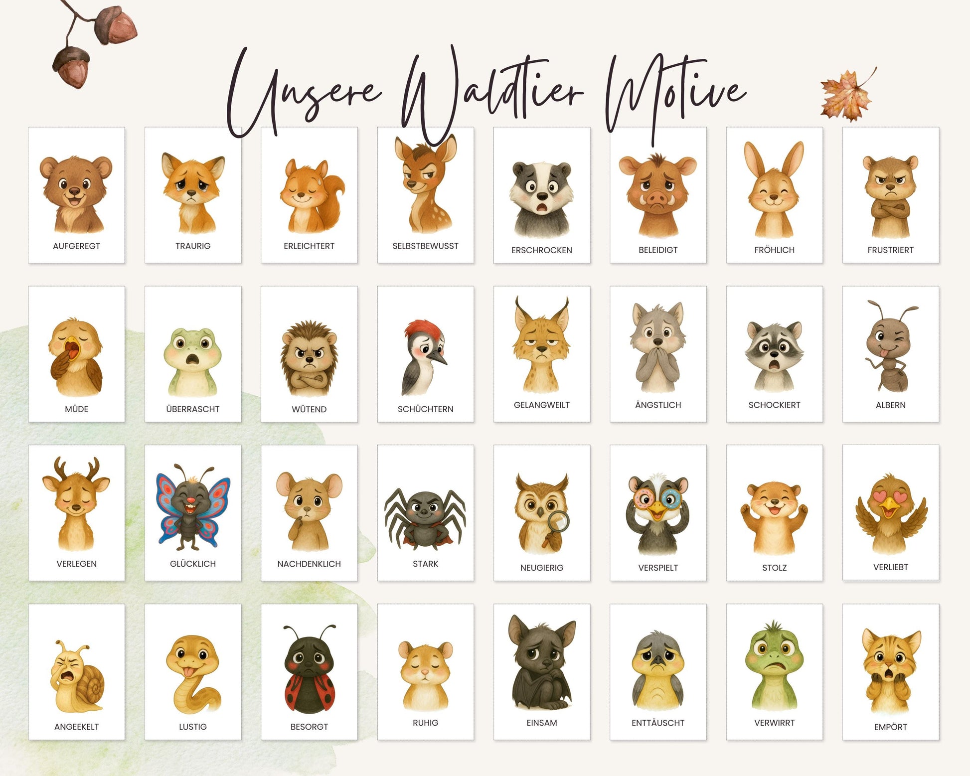 Emotionskarten 32 KARTEN - Design WALD TIERE