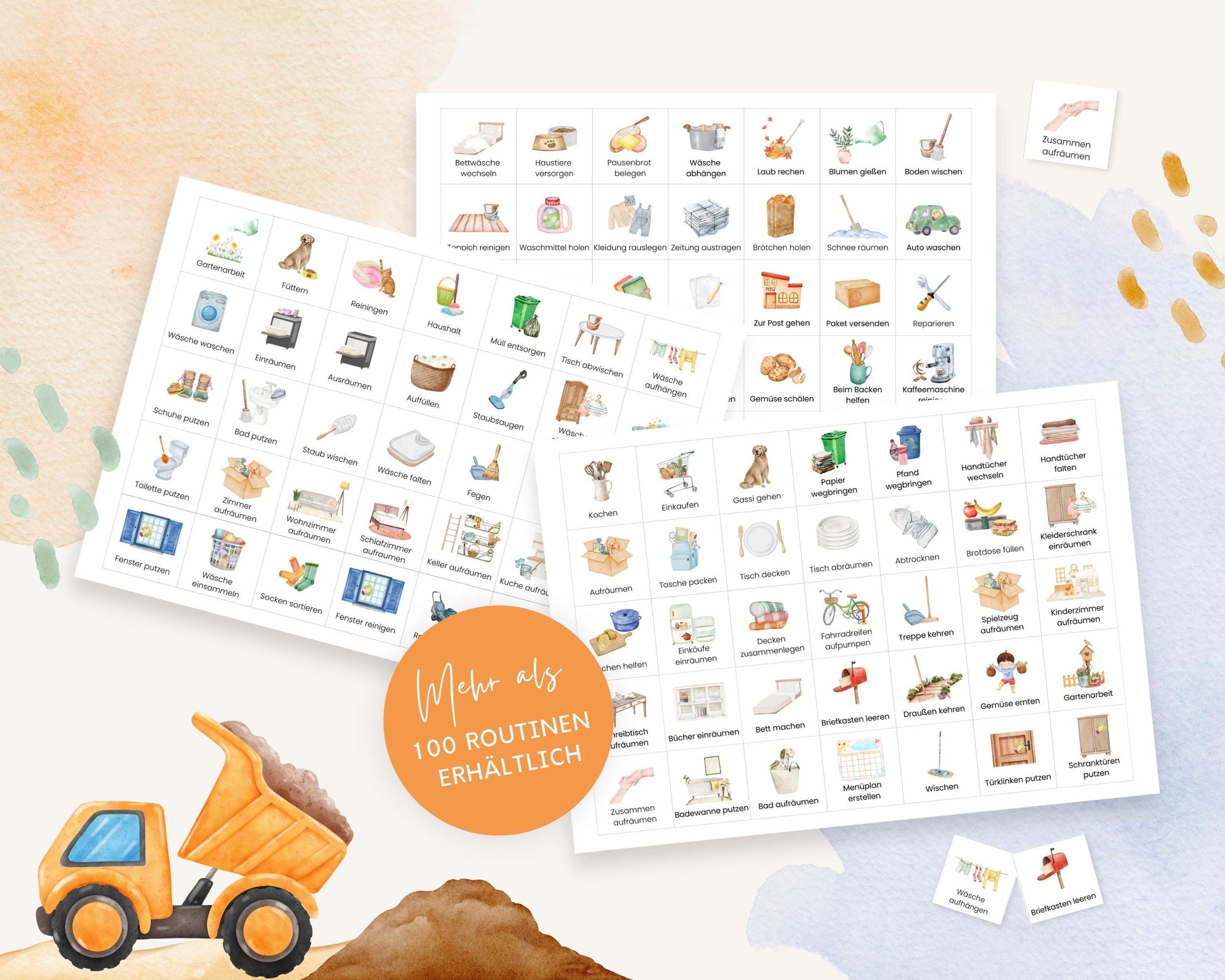 ✔ Über 100x Routinenkarten (laminiert, mit Klebeklettpunkten zum Befestigen, zum Selbstschneiden)
