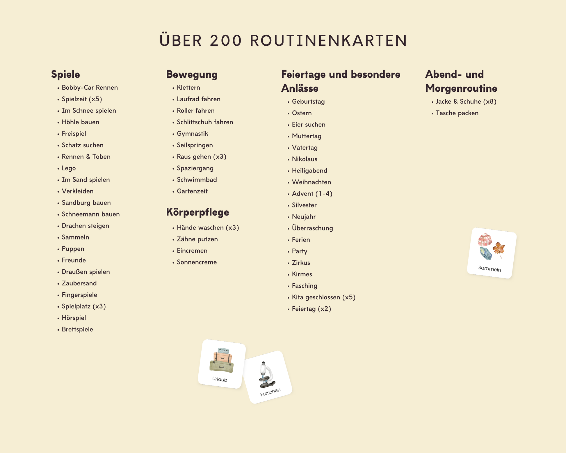 ✔ Über 200 physische, gestanzte Routinekarten