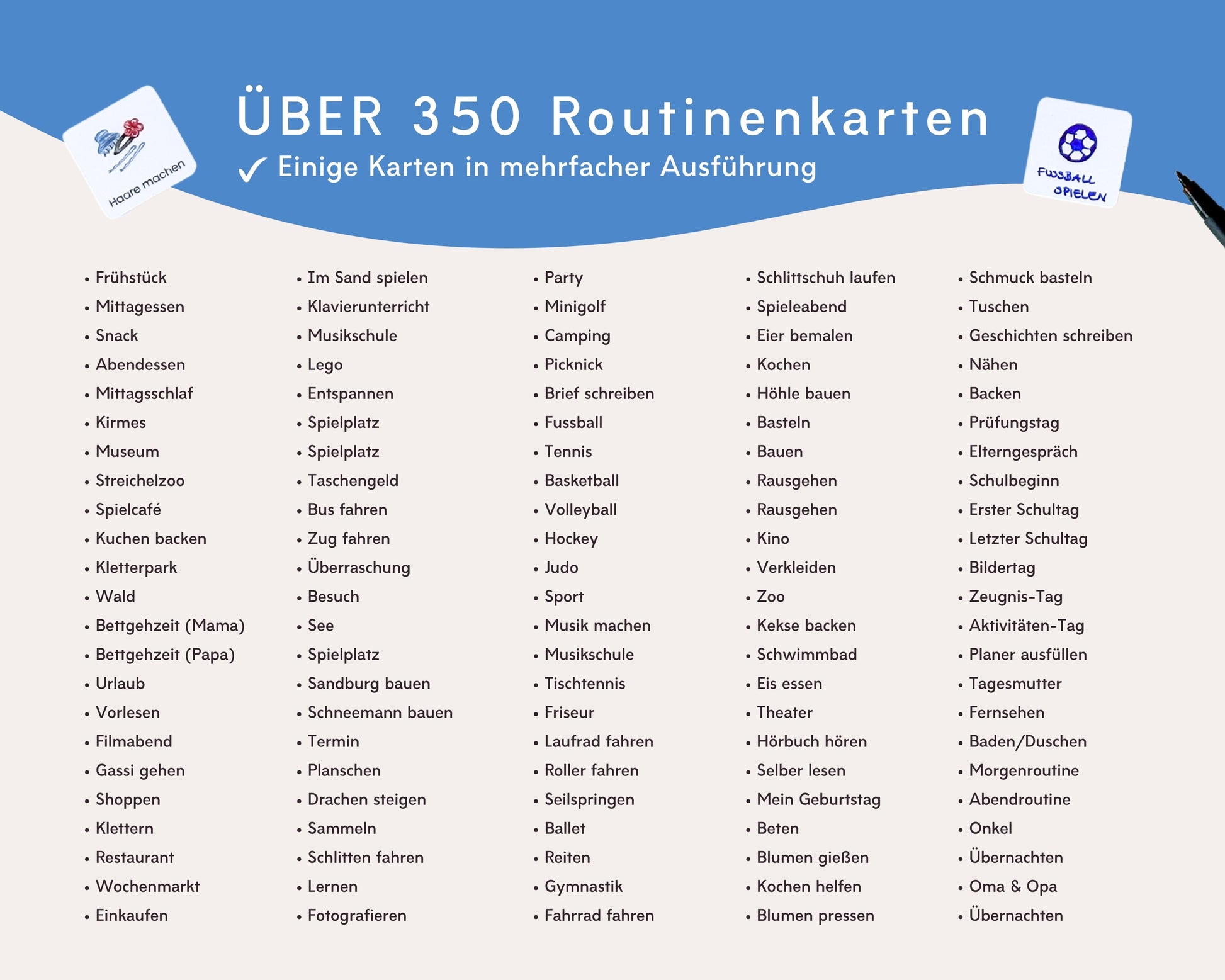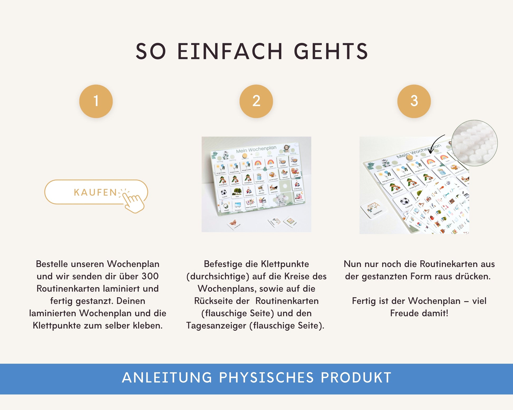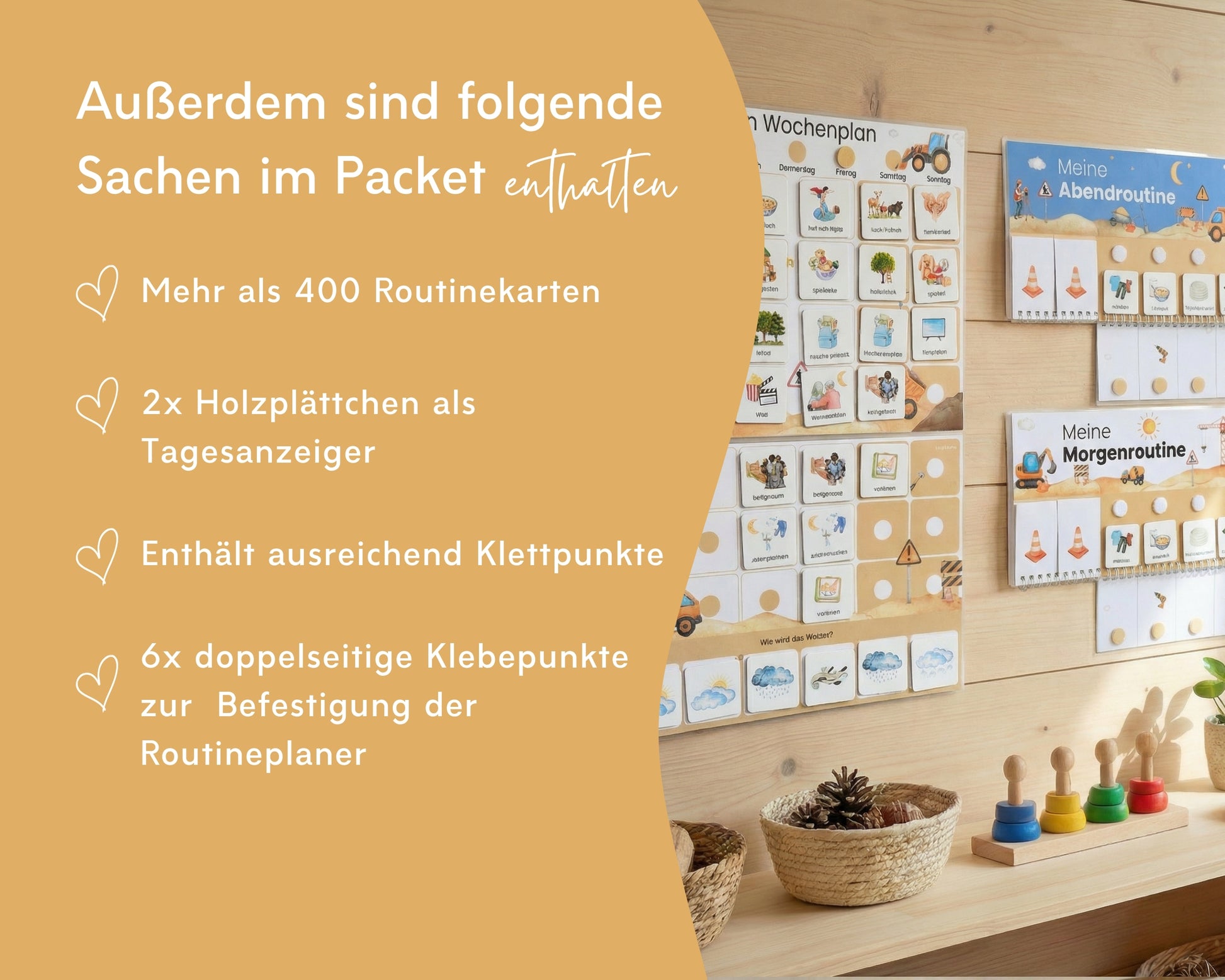 Alle Elemente sind robust, wiederverwendbar und unterstützen eine klare, stressfreie Tages- und Wochenstruktur.