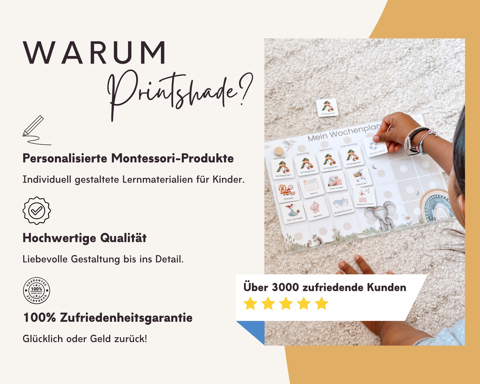 Der Wochenplan zeigt deinem Kind, was in der Woche ansteht.