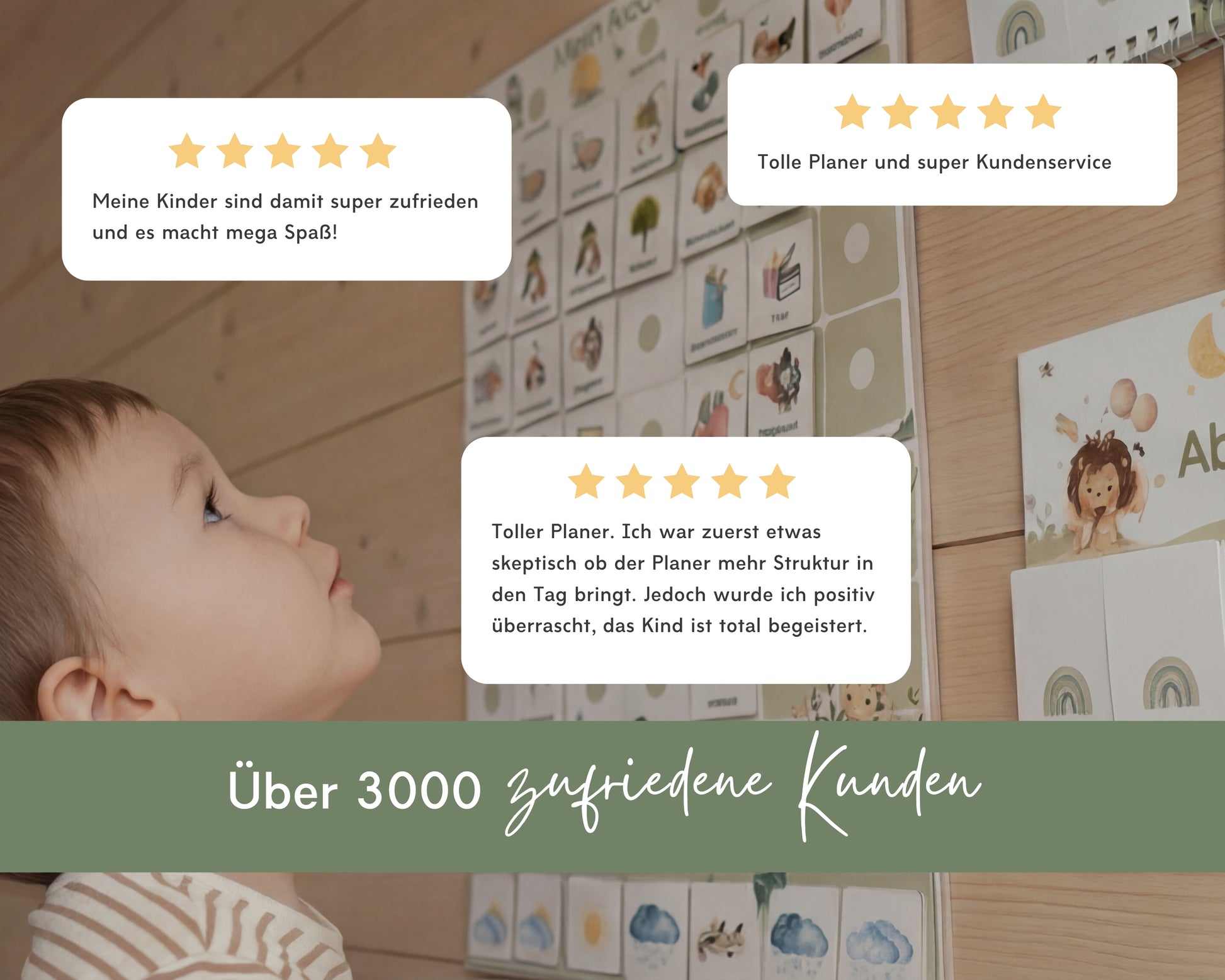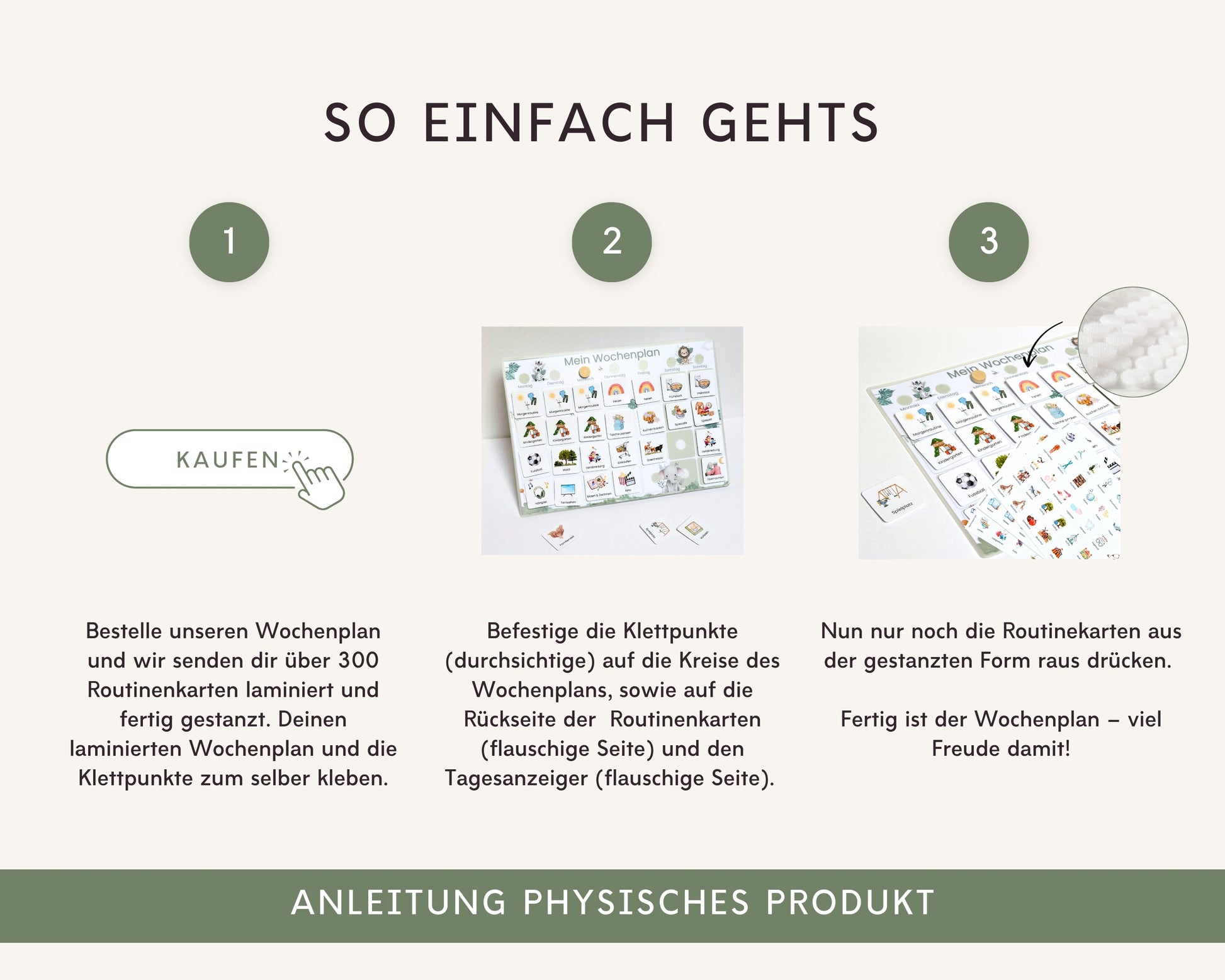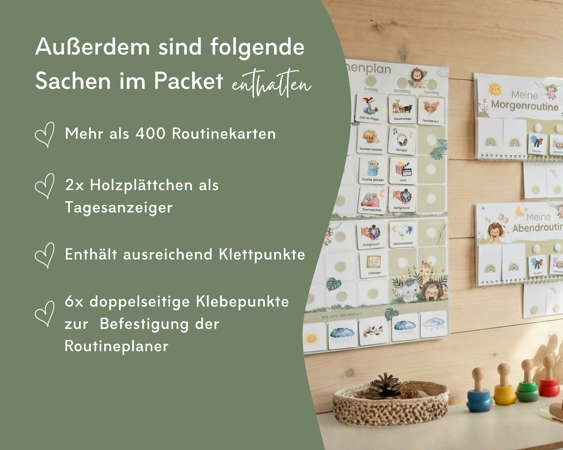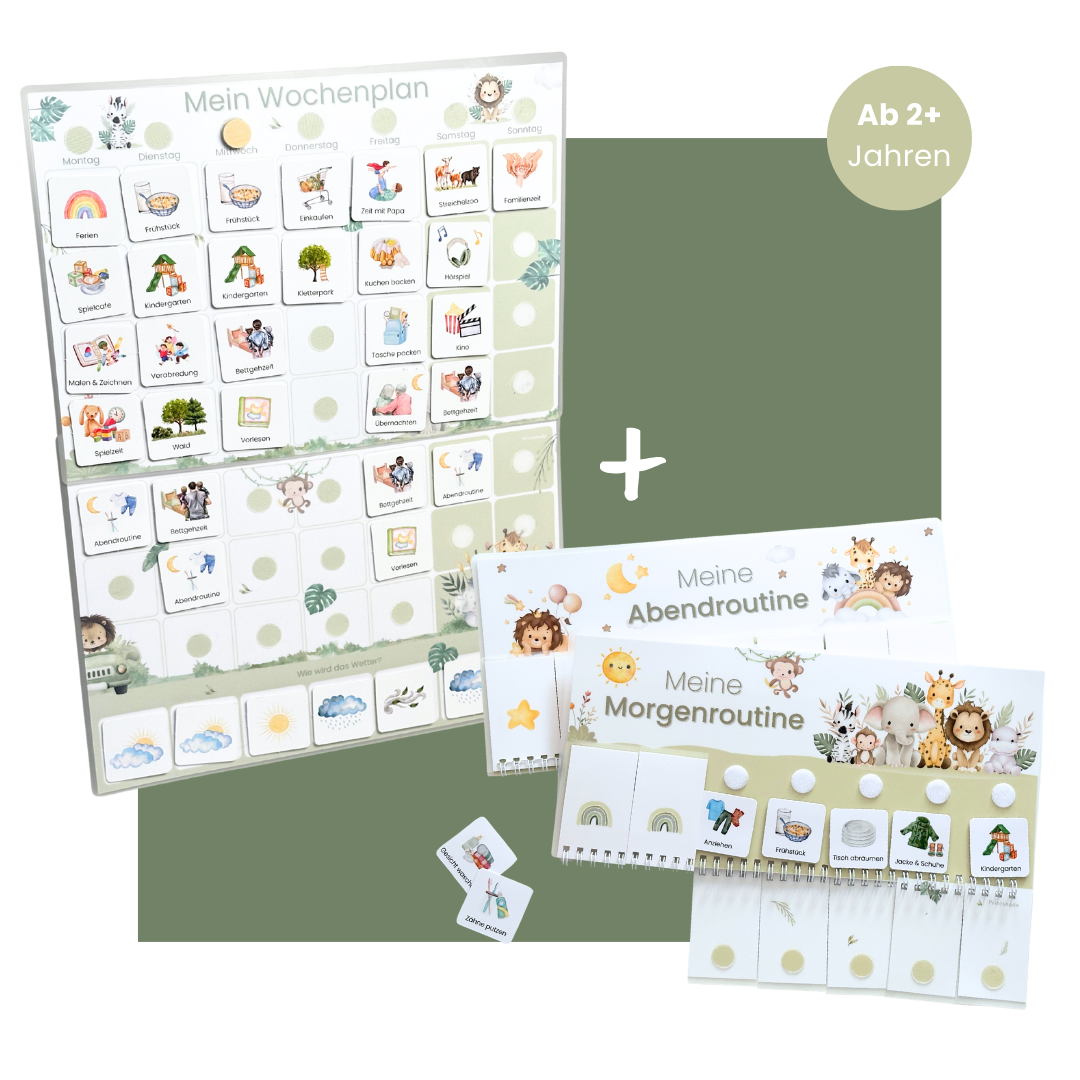 Alle Elemente sind robust, wiederverwendbar und unterstützen eine klare, stressfreie Tages- und Wochenstruktur.