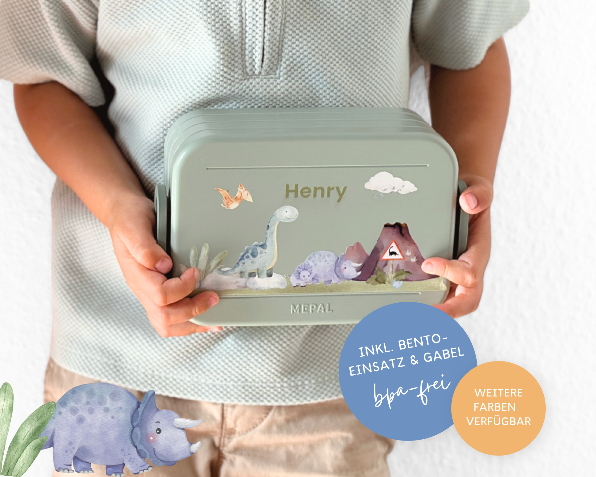 Mepal Brotdose mit Name personalisierbar - Design DINOSAURIER - Verschiedene Farben