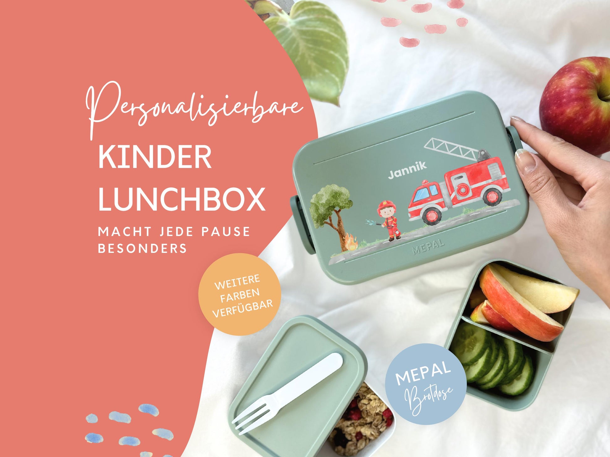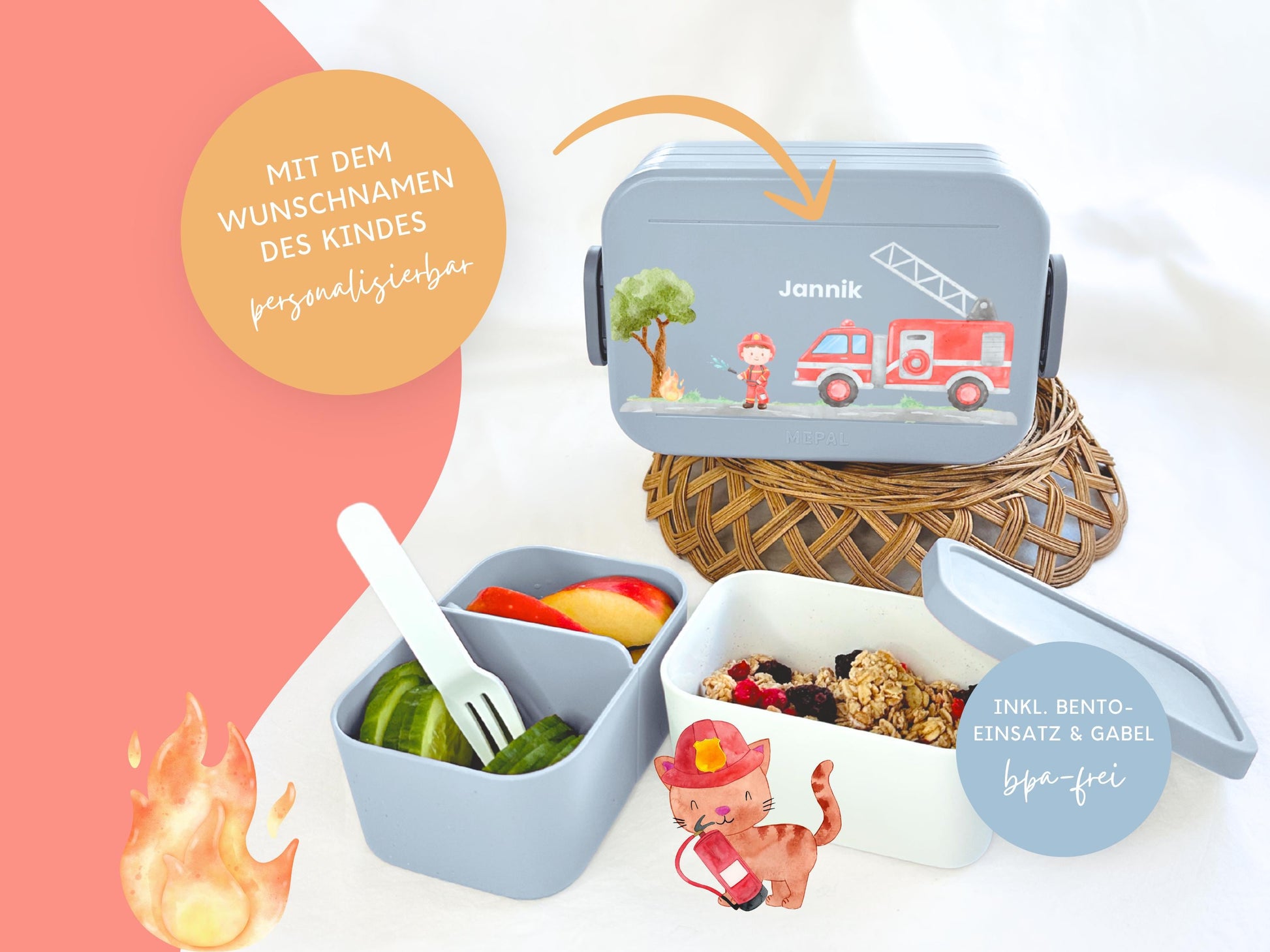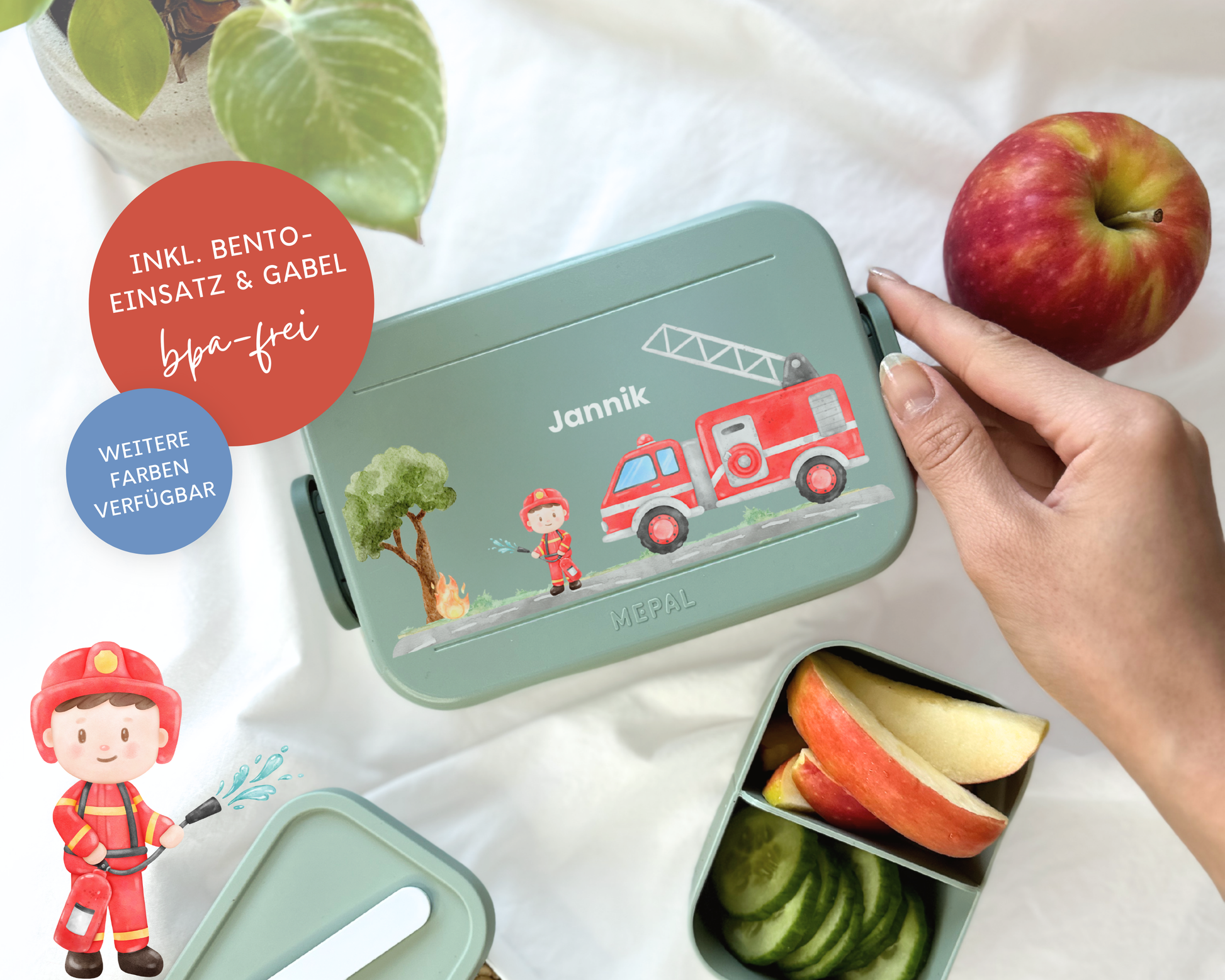 Mepal Brotdose mit Name personalisierbar - Design FEUERWEHR - Verschiedene Farben