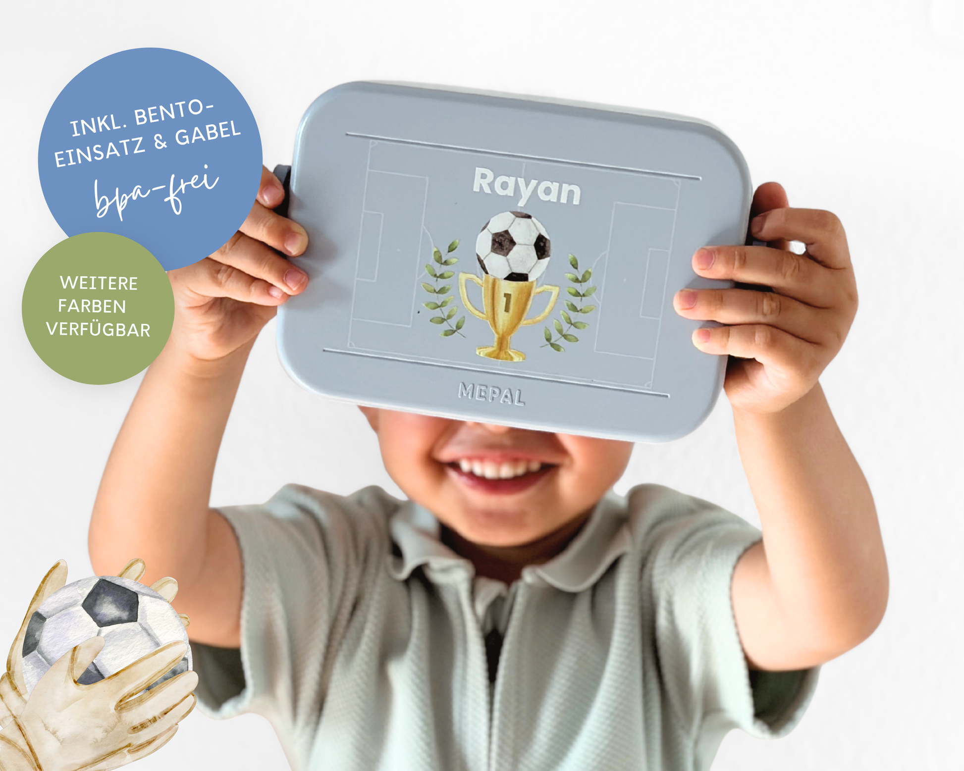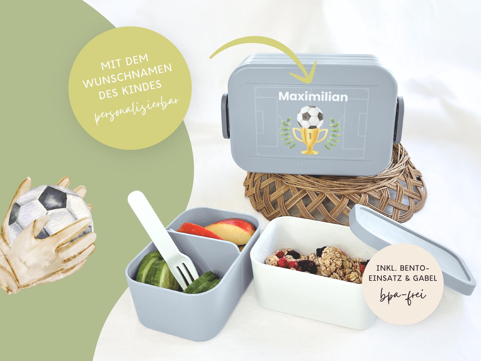 Mepal Brotdose mit Name personalisierbar - Design FUSSBALL - Verschiedene Farben