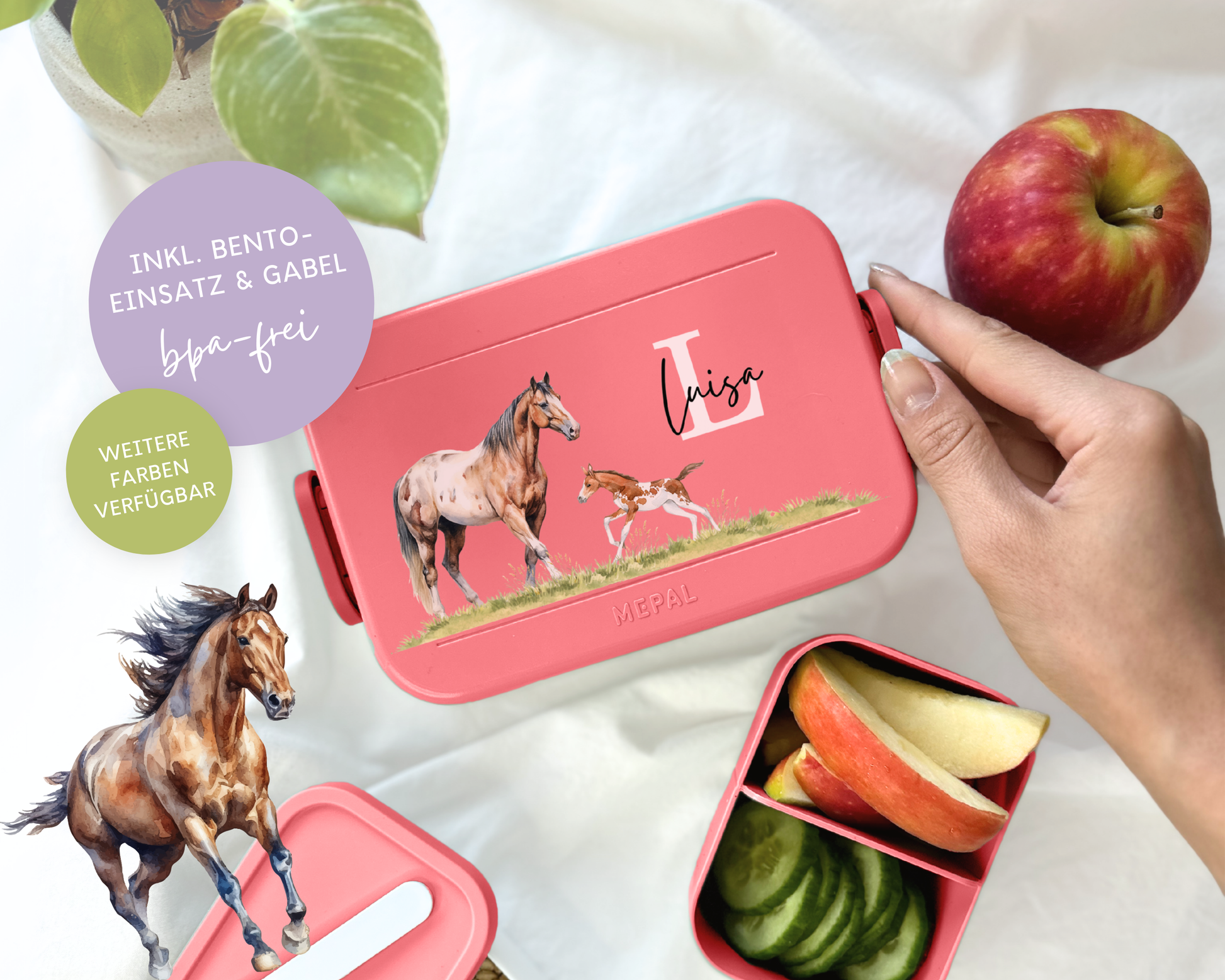 Mepal Brotdose mit Name personalisierbar - Design PFERDE - Verschiedene Farben
