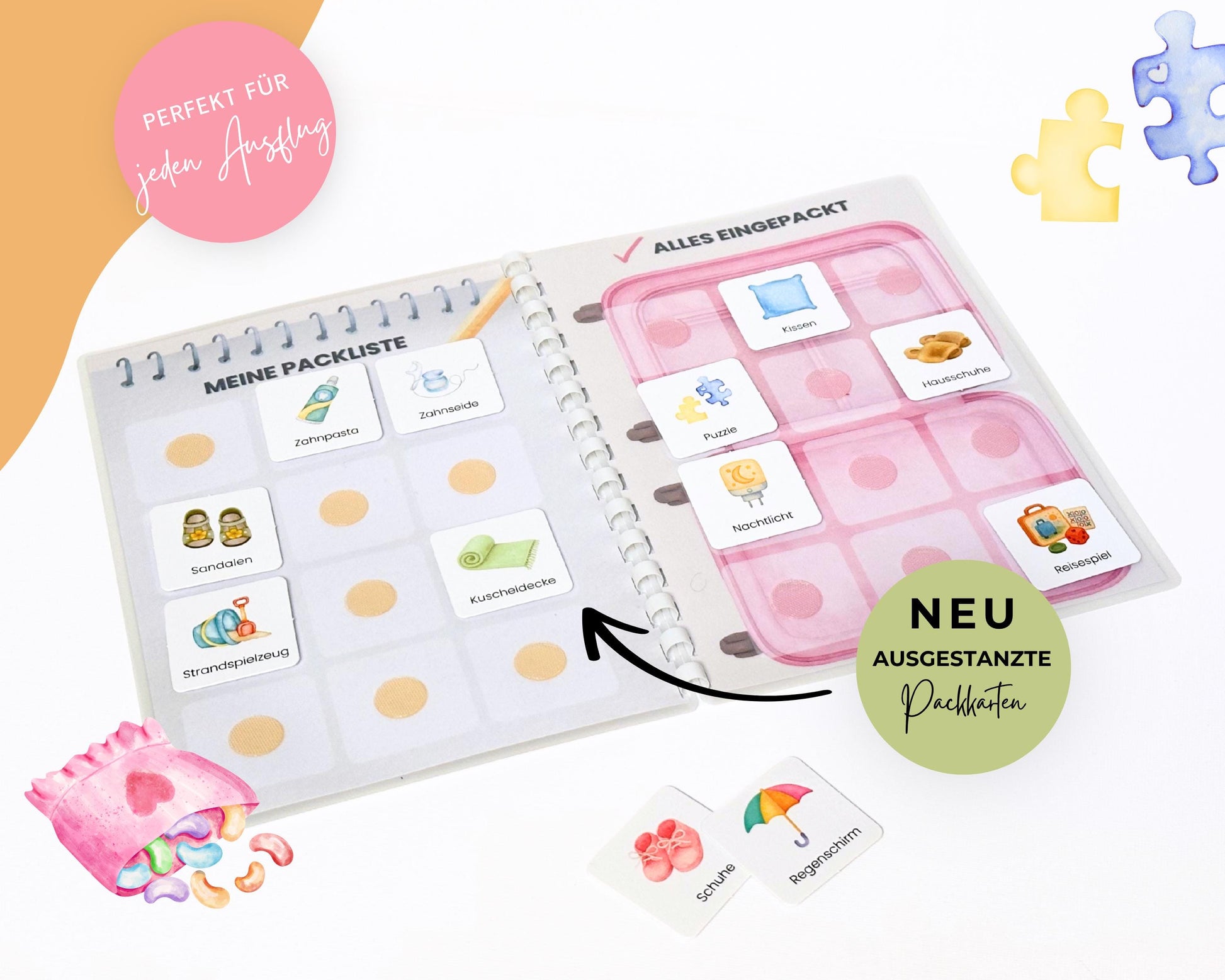Die kindgerechten Illustrationen machen das Kofferpacken zu einer spielerischen und strukturierten Aktivität, die Selbstvertrauen stärkt und für entspannte Reisevorbereitungen sorgt. ✨