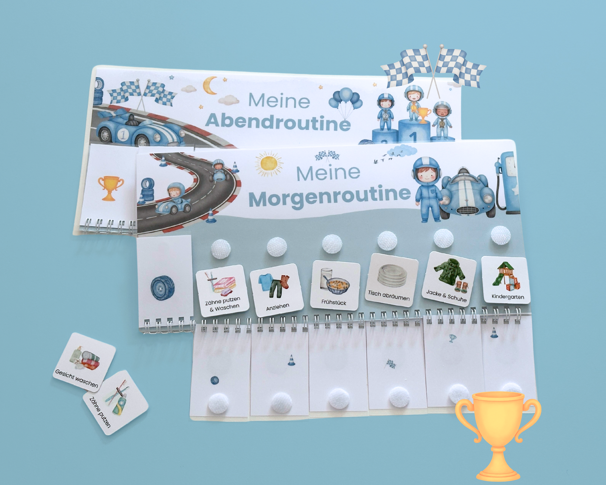 Ob Morgen- oder Abendroutine: Alles ist kindgerecht gestaltet und motiviert dein Kind, Aufgaben selbstständig und mit Stolz zu erledigen.