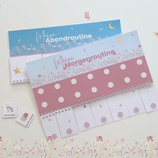 ✔ 30x Morgenroutinenkarten (gestanzt, mit Klettklebepunkten zum Befestigen)
