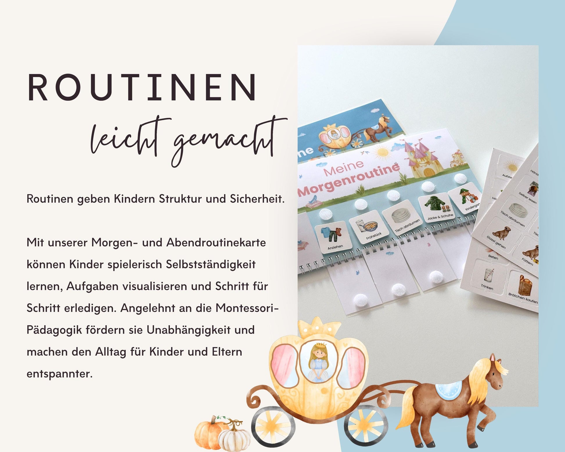 Gestalte den Alltag deines Kindes spielerisch und strukturiert – mit unserem liebevoll designten Montessori-inspirierten Morgen- und Abendroutine-Set!