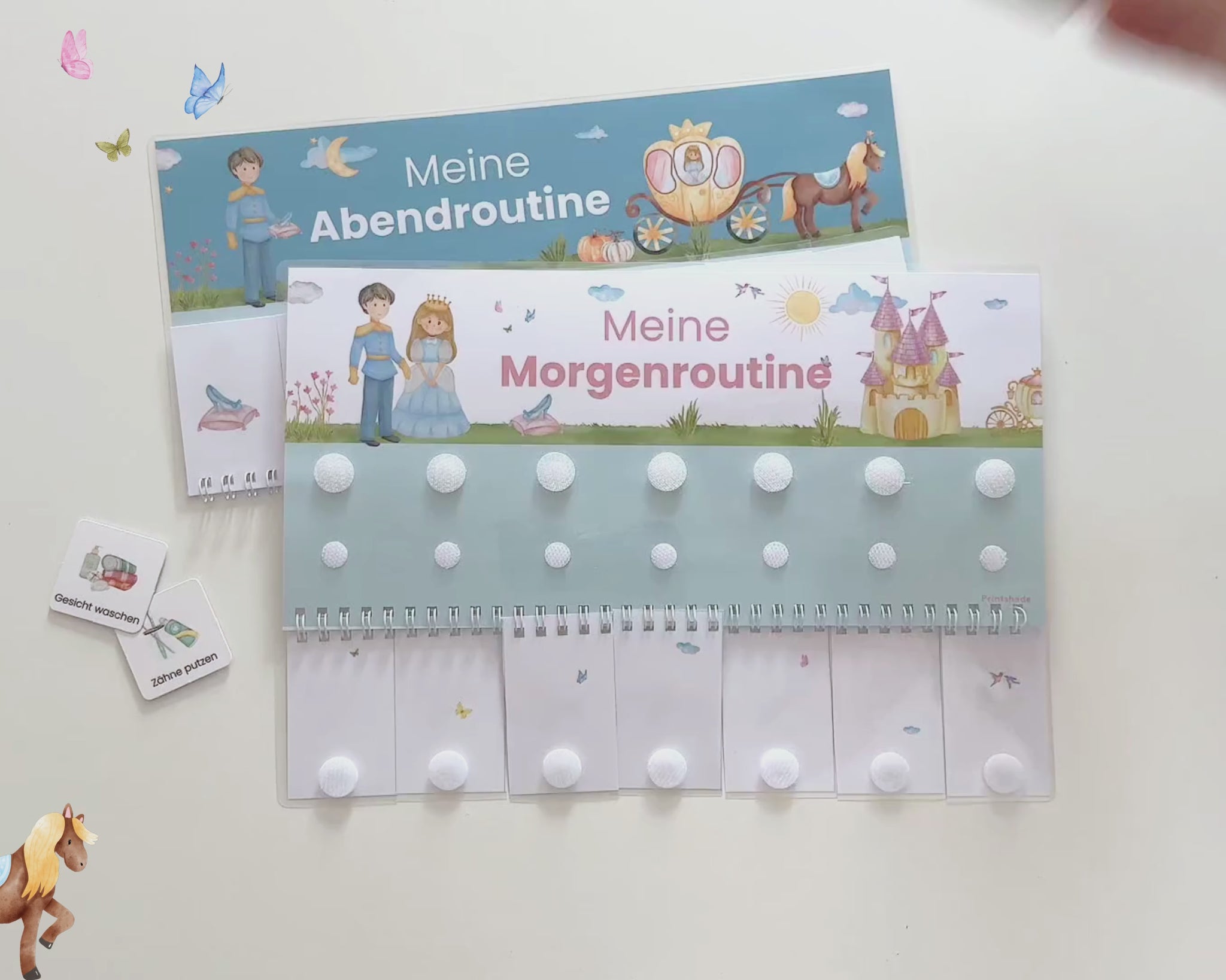 ✔ 30x Morgenroutinenkarten (gestanzt, mit Klettklebepunkten zum Befestigen)