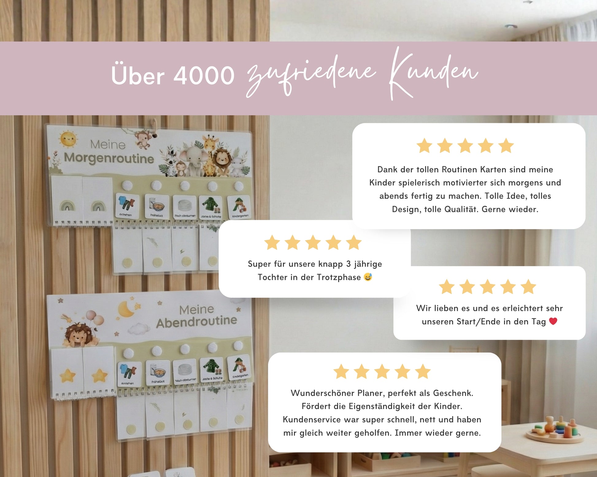 Ob Morgen- oder Abendroutine: Alles ist kindgerecht gestaltet und motiviert dein Kind, Aufgaben selbstständig und mit Stolz zu erledigen.