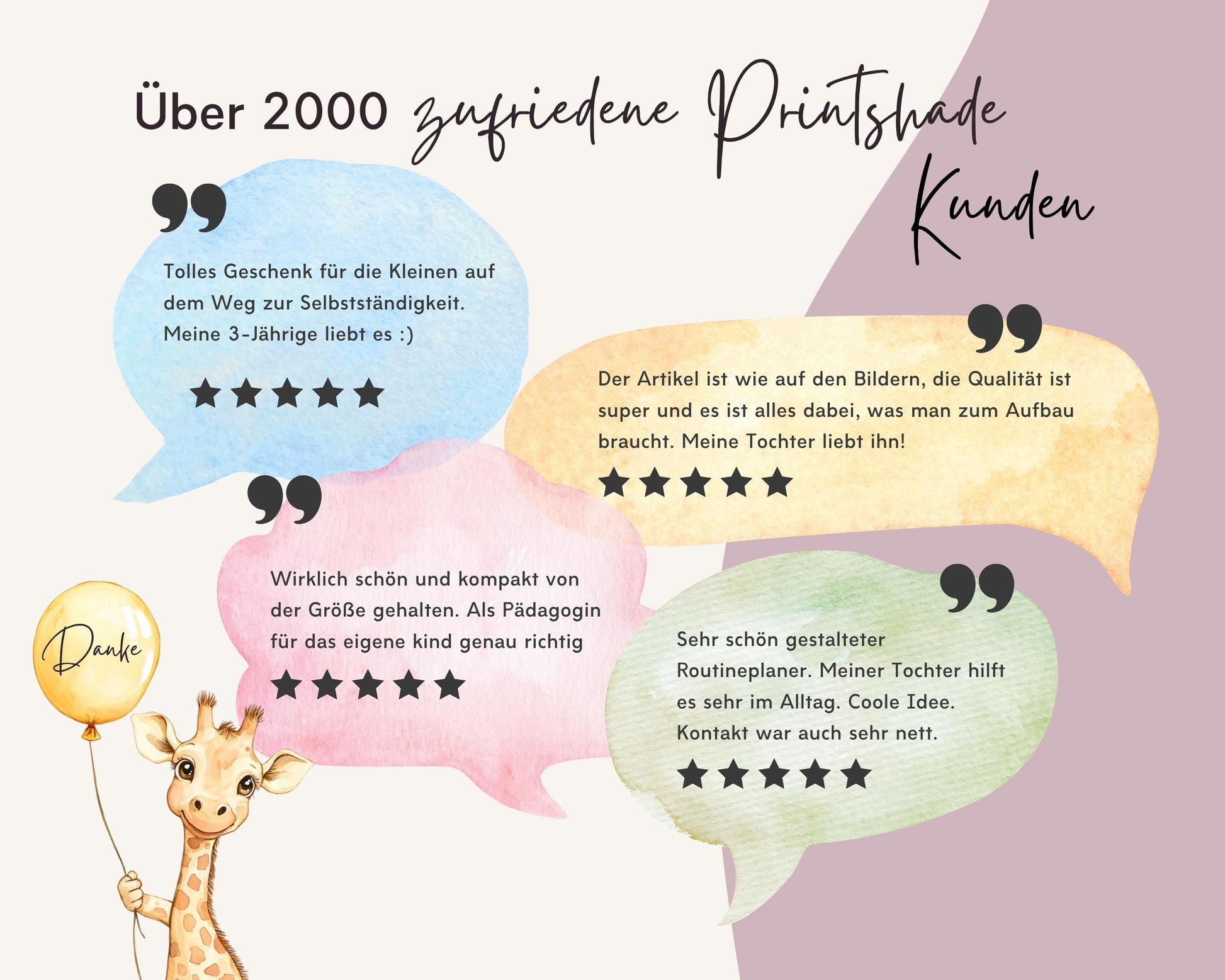 Ob Otter, Löwe oder Bagger – die kindgerechten Illustrationen machen jede Aufgabe zu einem kleinen Abenteuer und helfen den Jüngsten, den Überblick zu behalten. Nach dem Montessori-Prinzip fördert der Plan die Selbstständigkeit deines Kindes und bringt mehr Ruhe in die täglichen Abläufe. So werden Morgen- und Abendstunden entspannter und zu wertvollen, fröhlichen Familienmomenten.