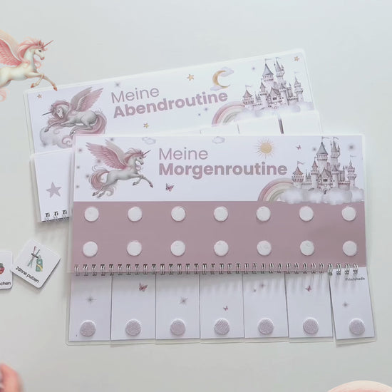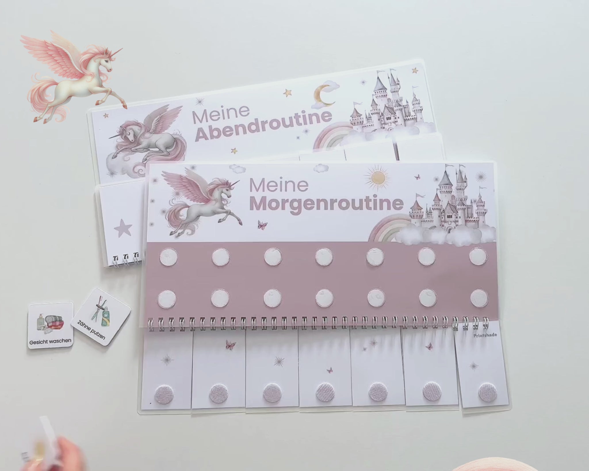 Routineplaner Montessori inkl. Symbolkarten - Design EINHORN - Personalisierbar