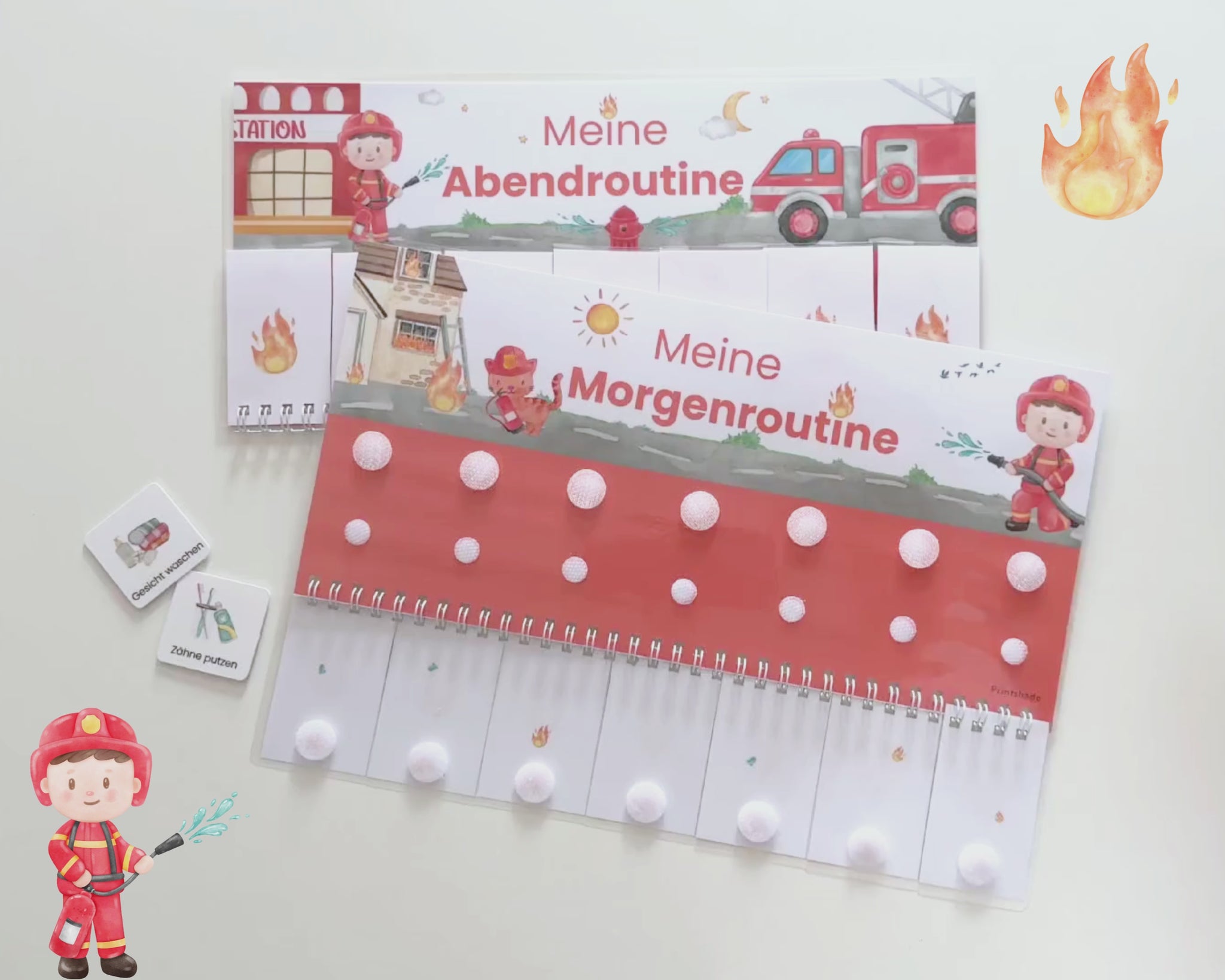 Routineplaner Montessori inkl. Symbolkarten - Design FEUERWEHR - Personalisierbar