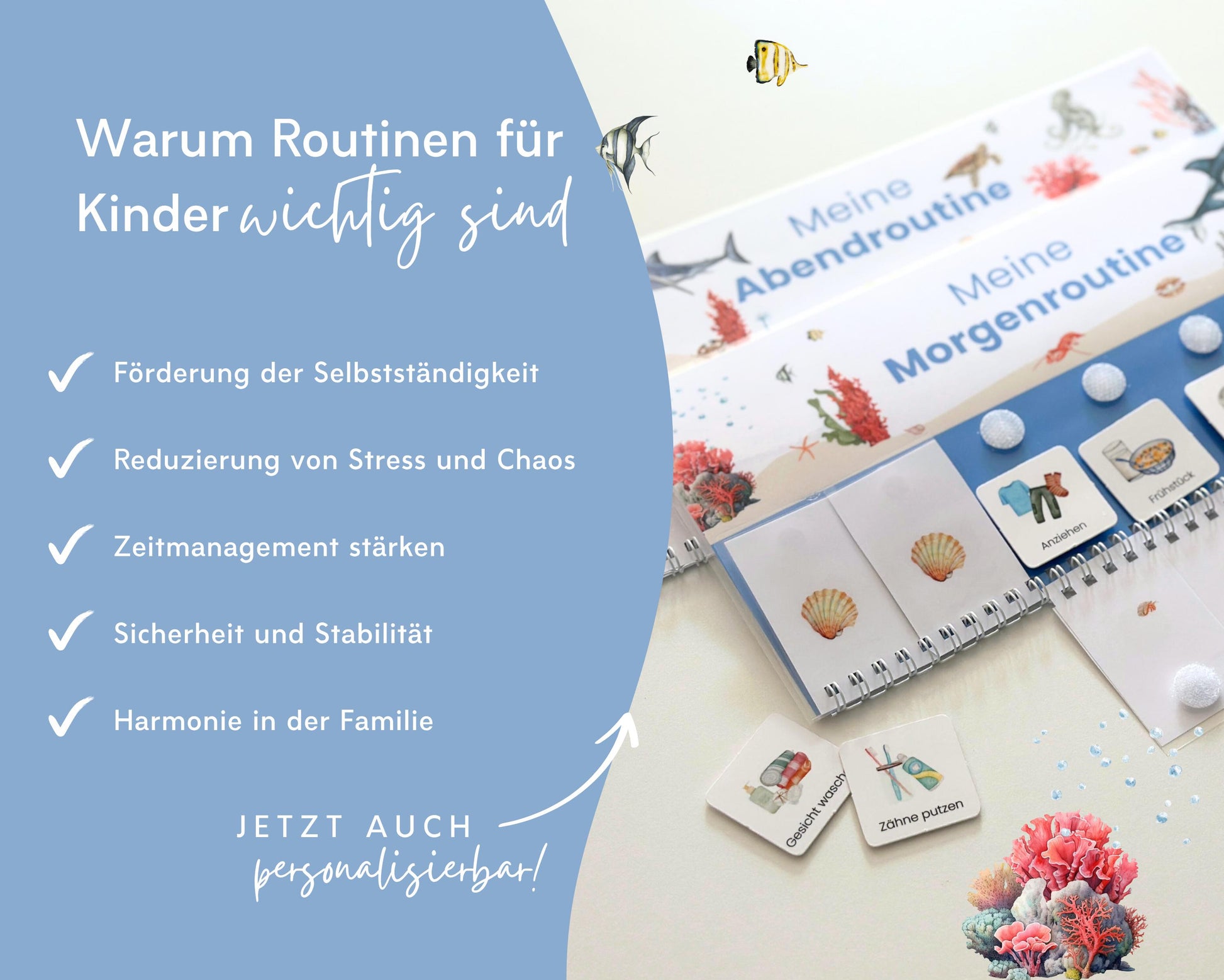 Routineplaner Montessori inkl. Symbolkarten - Design MEER - Personalisierbar