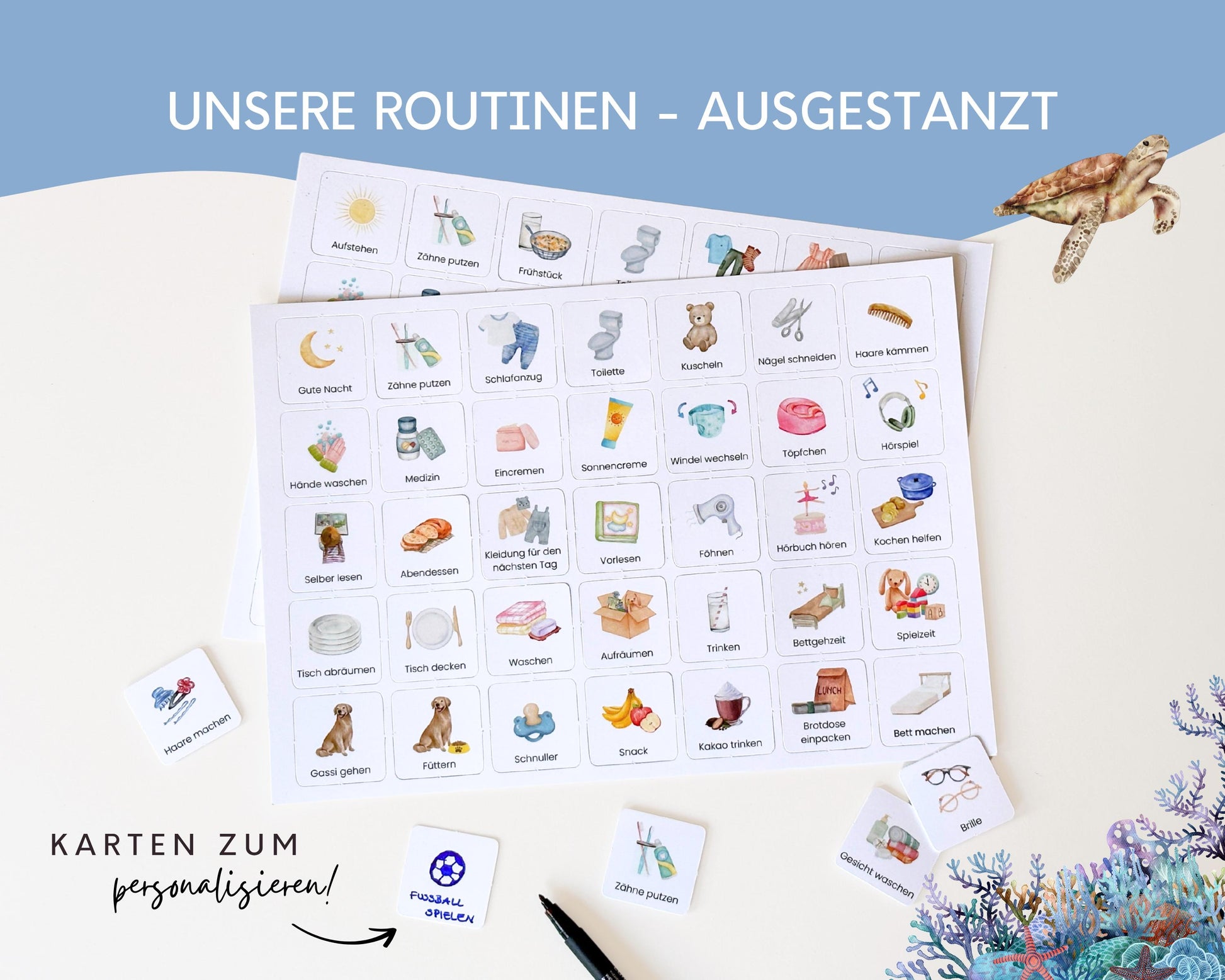 ✔ 5x personalisierbare Routinenkarten (gestanzt, mit Klettklebepunkten zum Befestigen)