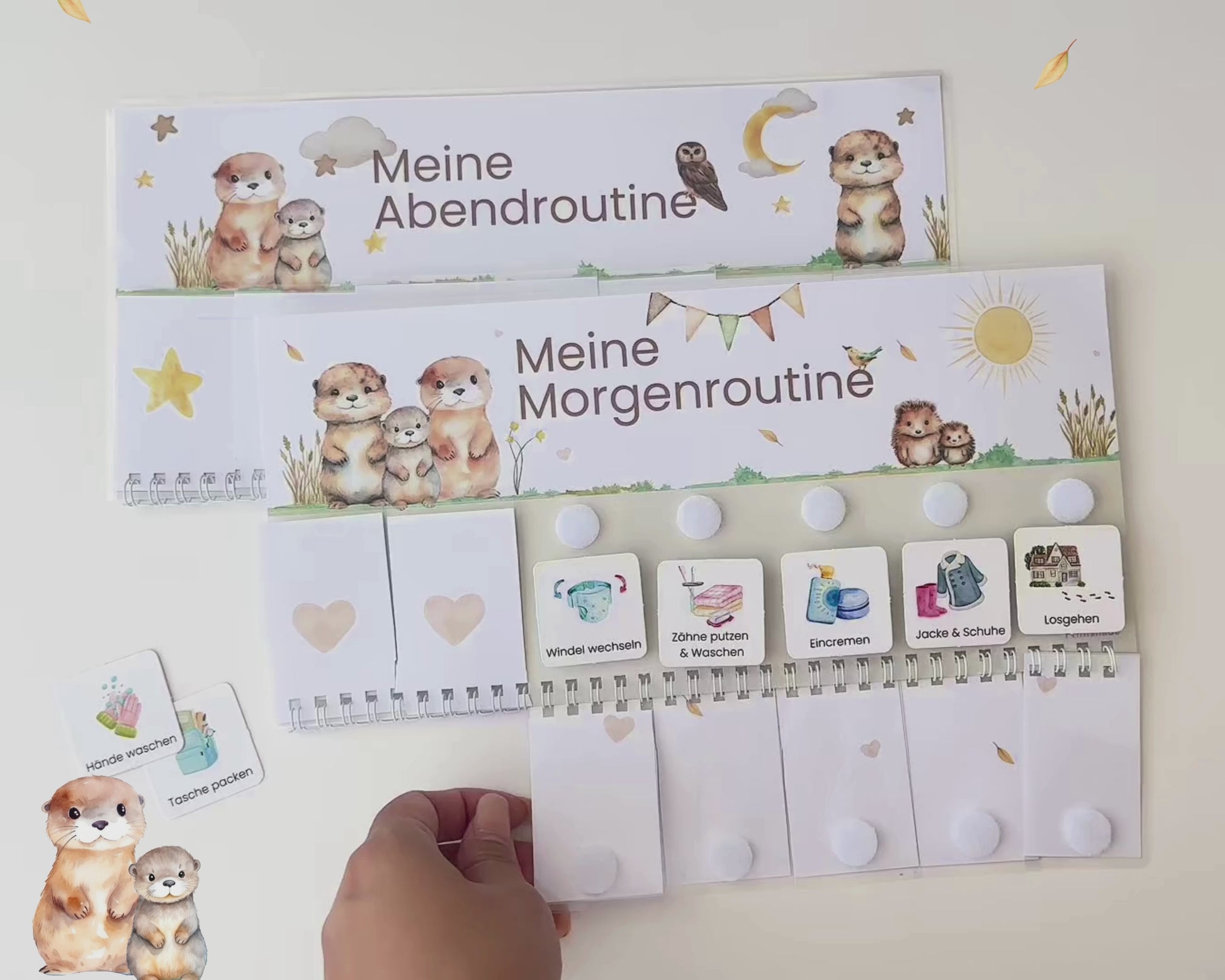 Gestalte den Alltag deines Kindes spielerisch und strukturiert – mit unserem liebevoll designten, Montessori-inspirierten Morgen- und Abendroutine-Set! Jede Aufgabe kann nach der Erledigung einfach umgeklappt werden, sodass dein Kind direkt sieht, was schon geschafft ist.