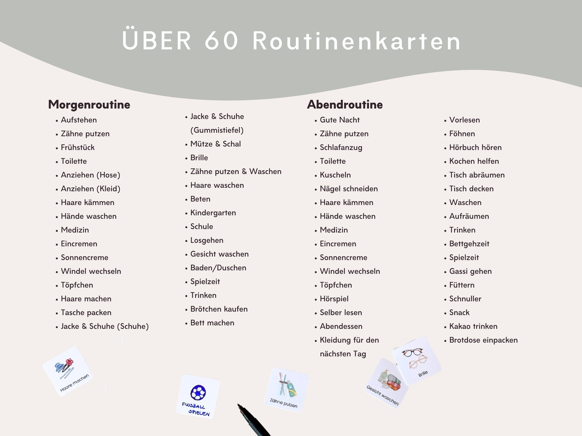 ✔ 30x Morgenroutinenkarten (gestanzt, mit Klettklebepunkten zum Befestigen)
