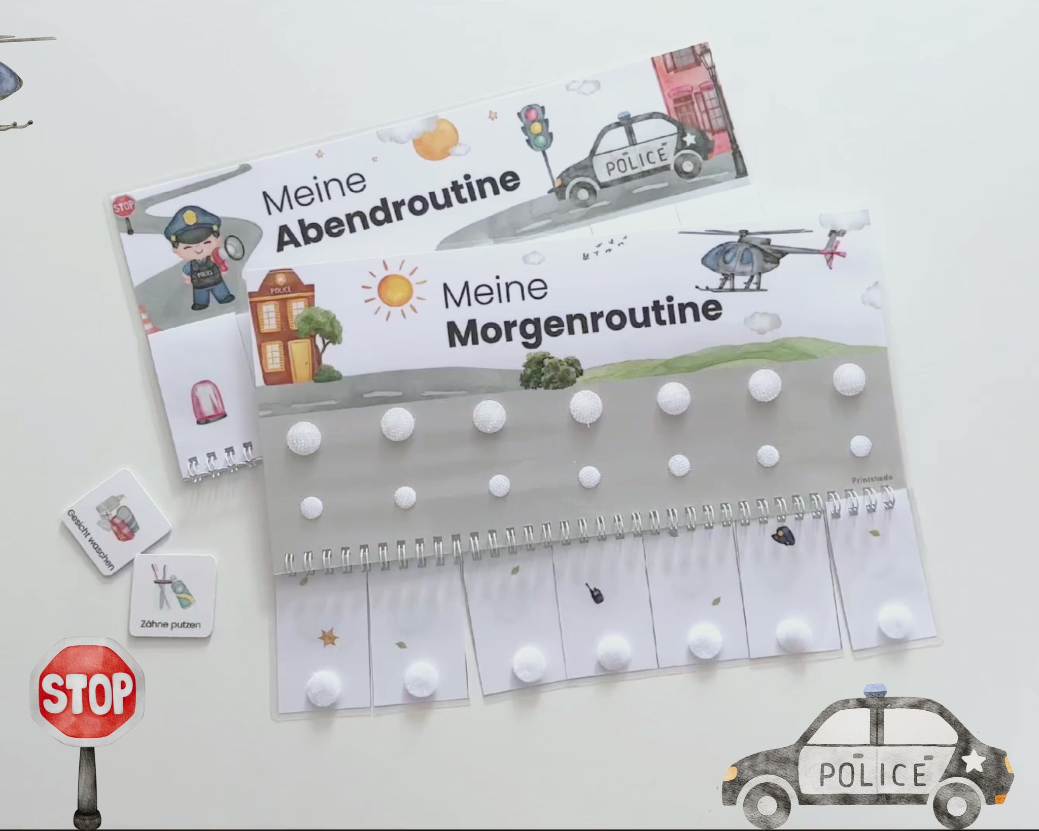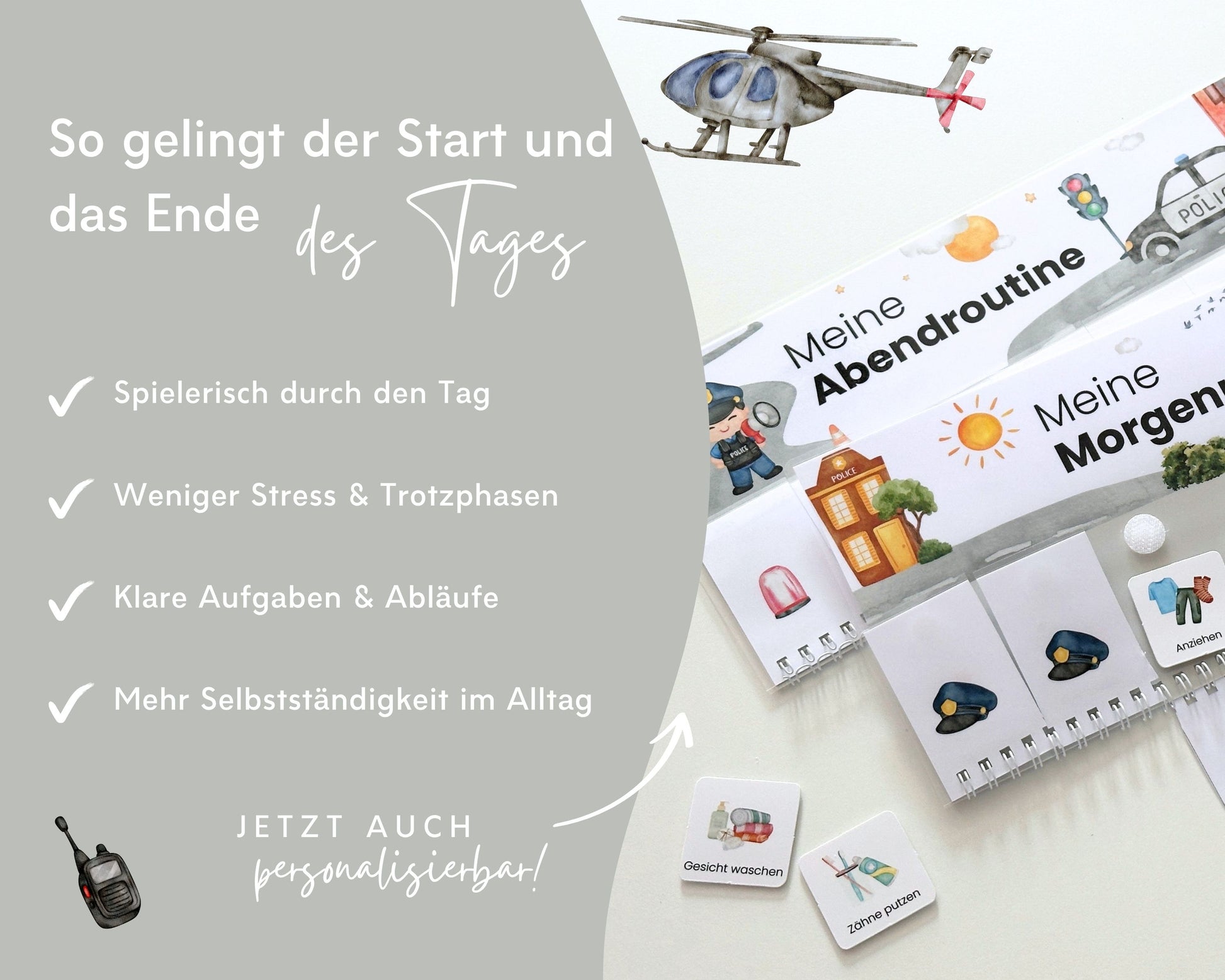 Routineplaner Montessori inkl. Symbolkarten - Design POLIZEI - Personalisierbar