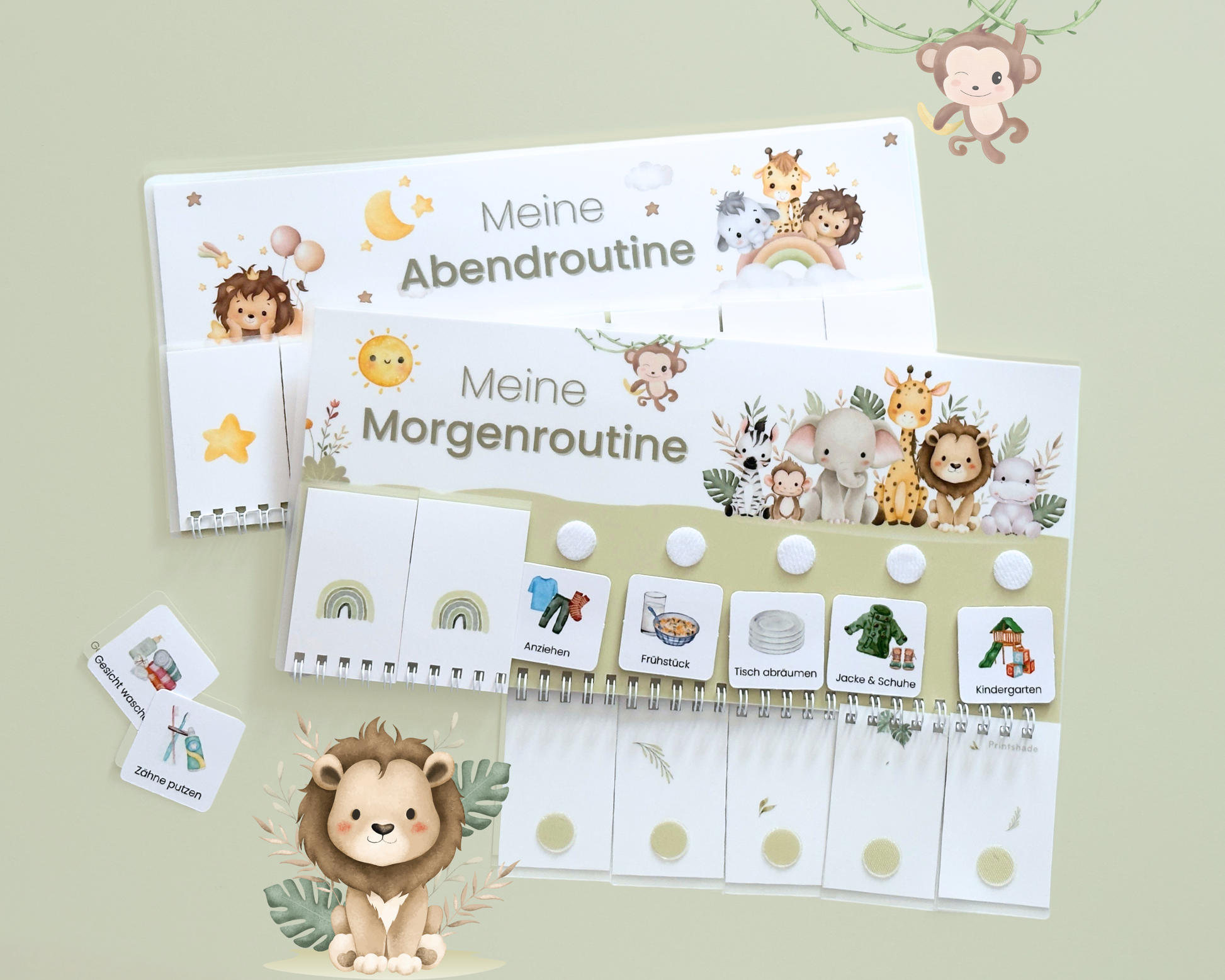 Ob Morgen- oder Abendroutine: Alles ist kindgerecht gestaltet und motiviert dein Kind, Aufgaben selbstständig und mit Stolz zu erledigen.