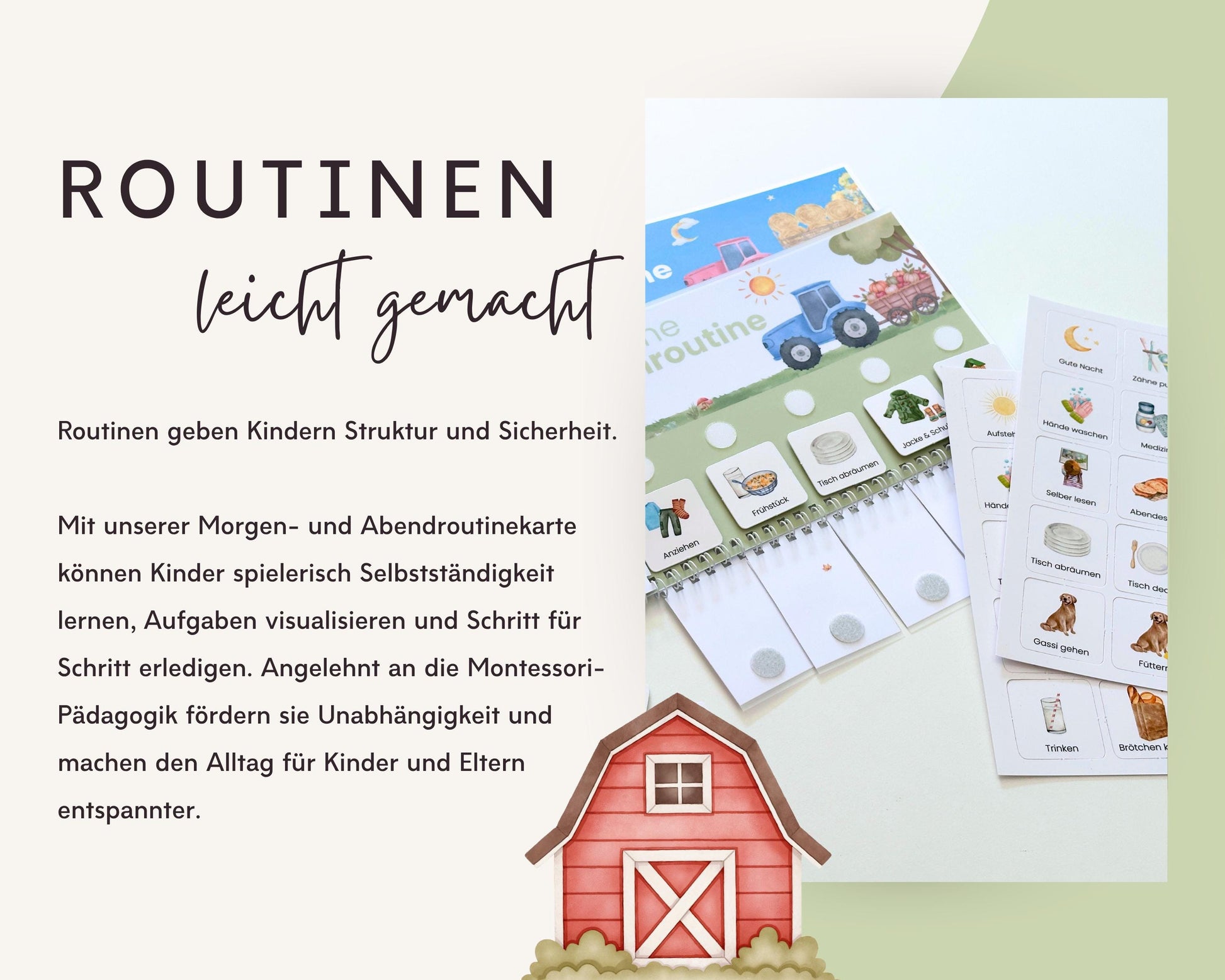Gestalte den Alltag deines Kindes spielerisch und strukturiert – mit unserem liebevoll designten Montessori-inspirierten Morgen- und Abendroutine-Set!