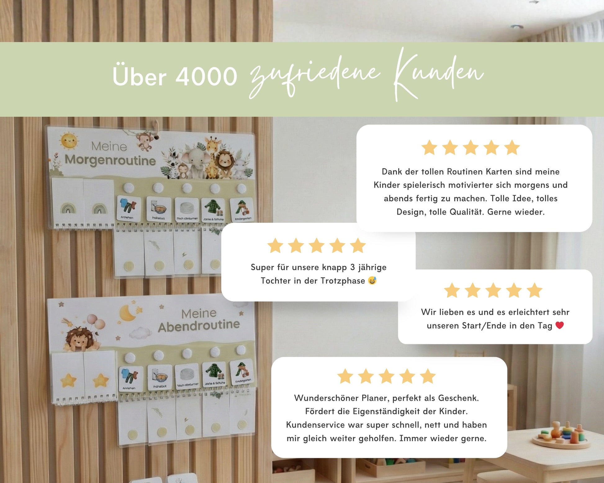 Ob Morgen- oder Abendroutine: Alles ist kindgerecht gestaltet und motiviert dein Kind, Aufgaben selbstständig und mit Stolz zu erledigen.