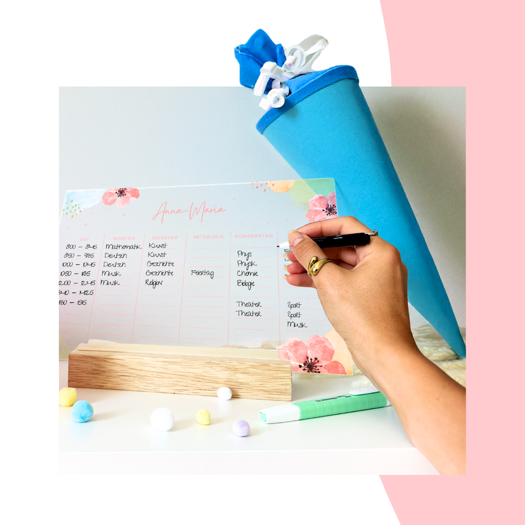 Der personalisierbarere Stundenplan aus hochwertigem Acryl bringt Struktur und Übersicht in den Schulalltag. Dank abwischbarer Oberfläche lässt er sich jederzeit anpassen und wächst flexibel mit dem Schuljahr mit.