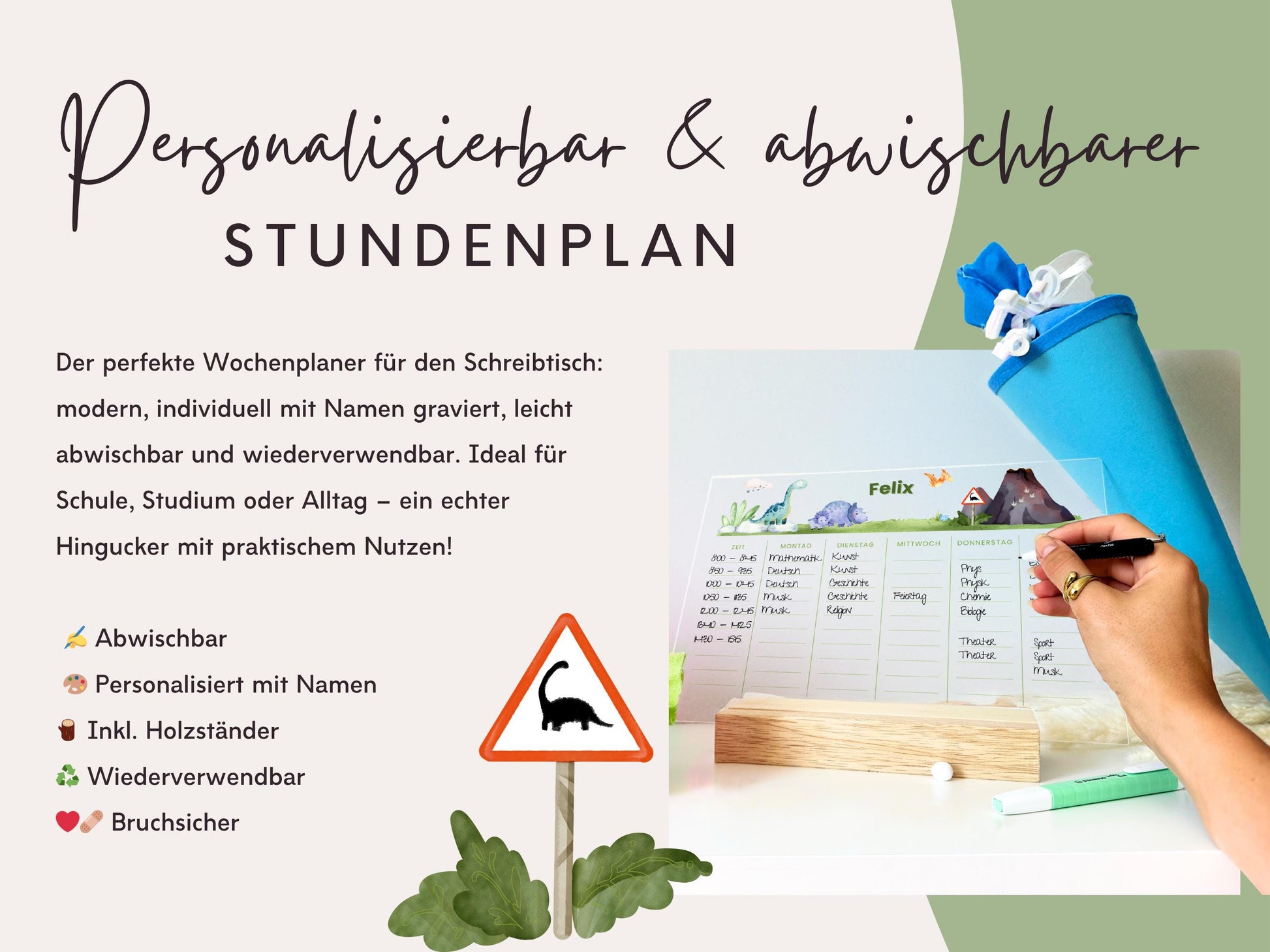 Mach den Schulstart unvergesslich 🎉 – mit unserem personalisierten, abwischbaren Stundenplan aus Acryl inkl. stabilem Holzaufsteller! Handgefertigt in Deutschland mit hochwertigem 3 mm Acryl – perfekt als Einschulungsgeschenk oder Schuljahresstart✨