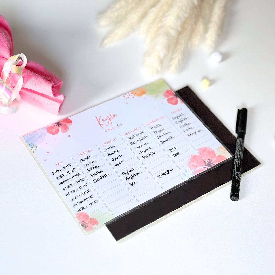 Stundenplan Magnet personalisierbar - Design BLUMEN AQUARELL