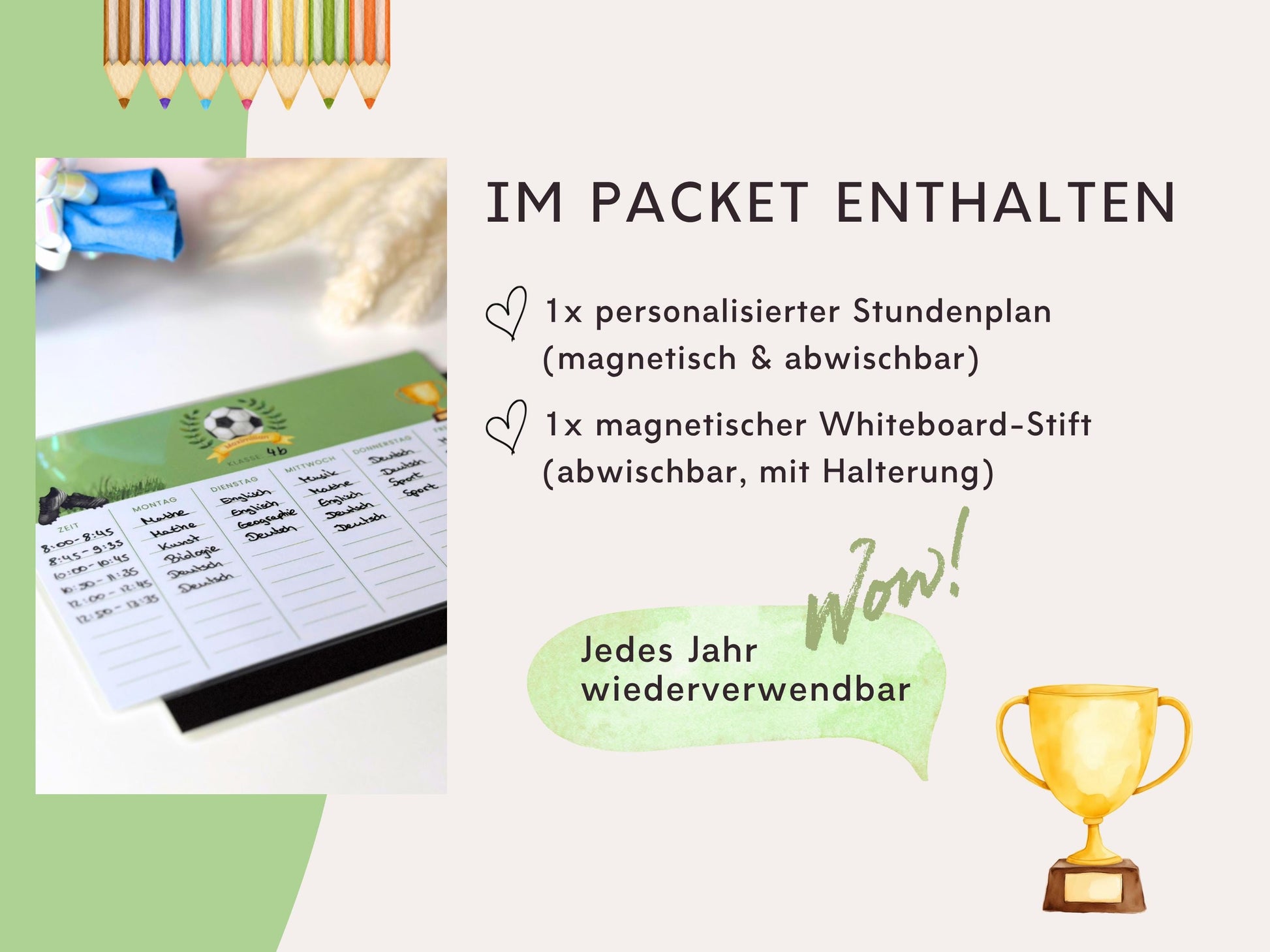 Personalisierter magnetischer Stundenplan für Kinder – abwischbar & wiederverwendbar – Einschulungsgeschenk in A4 oder A5
