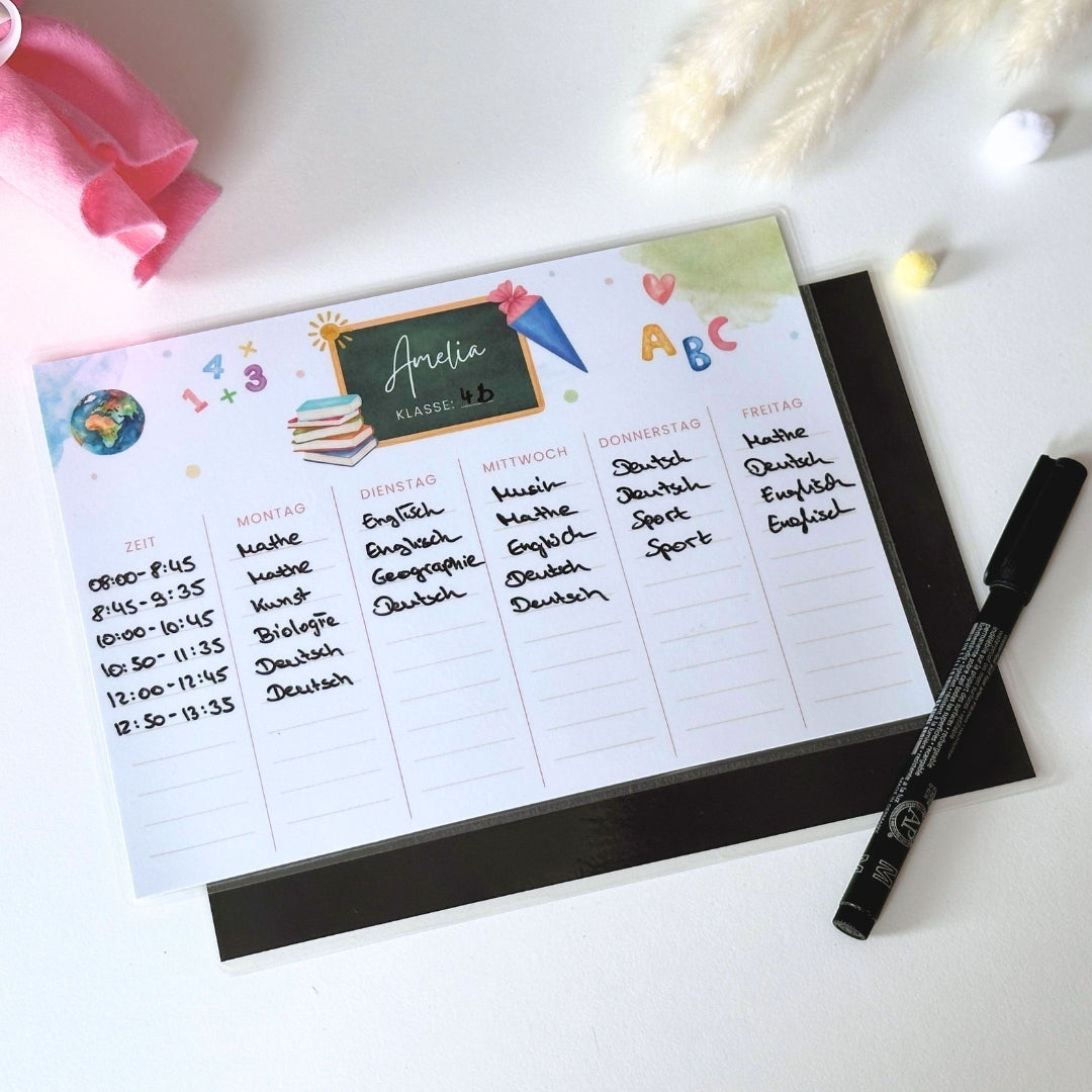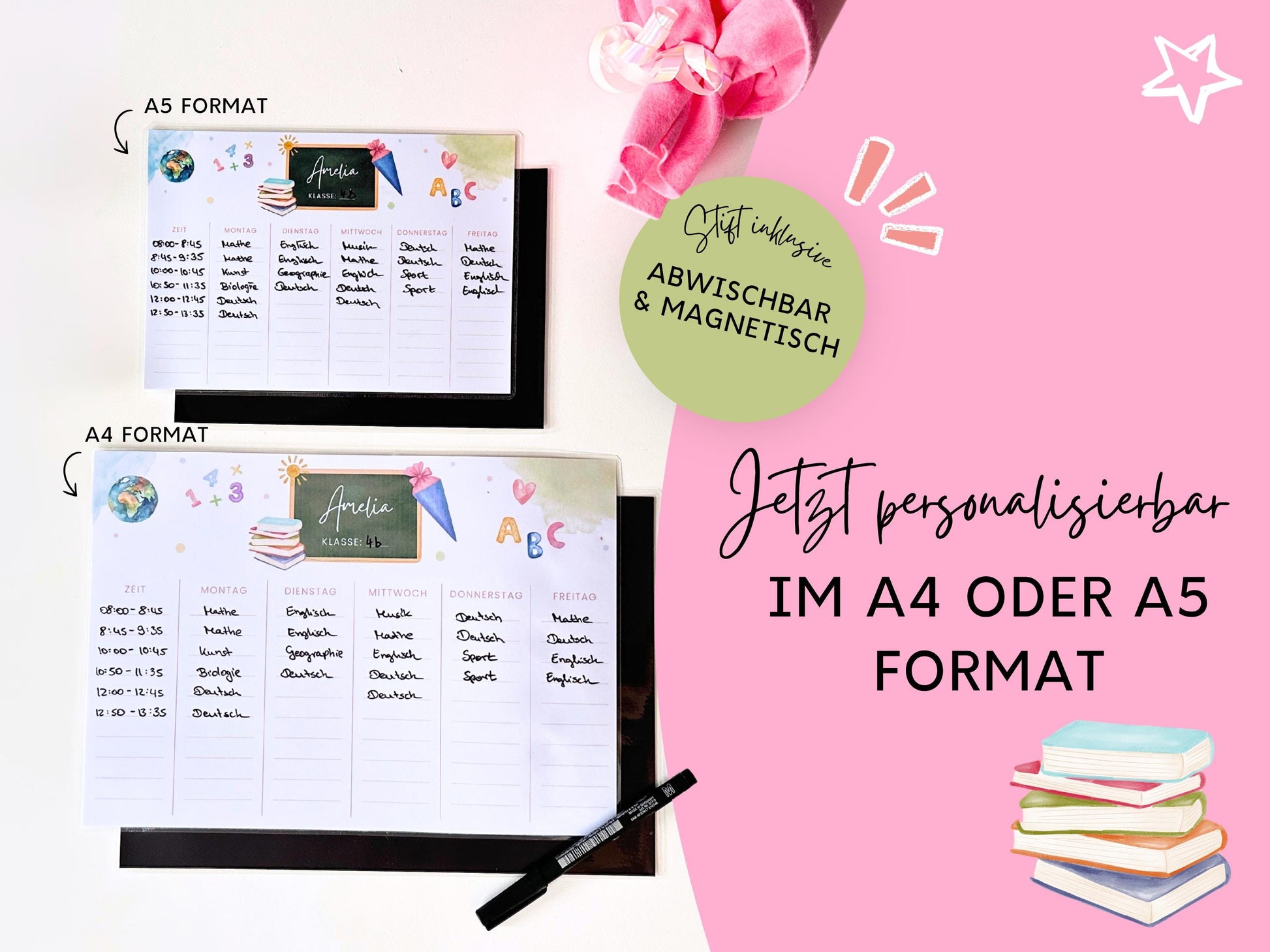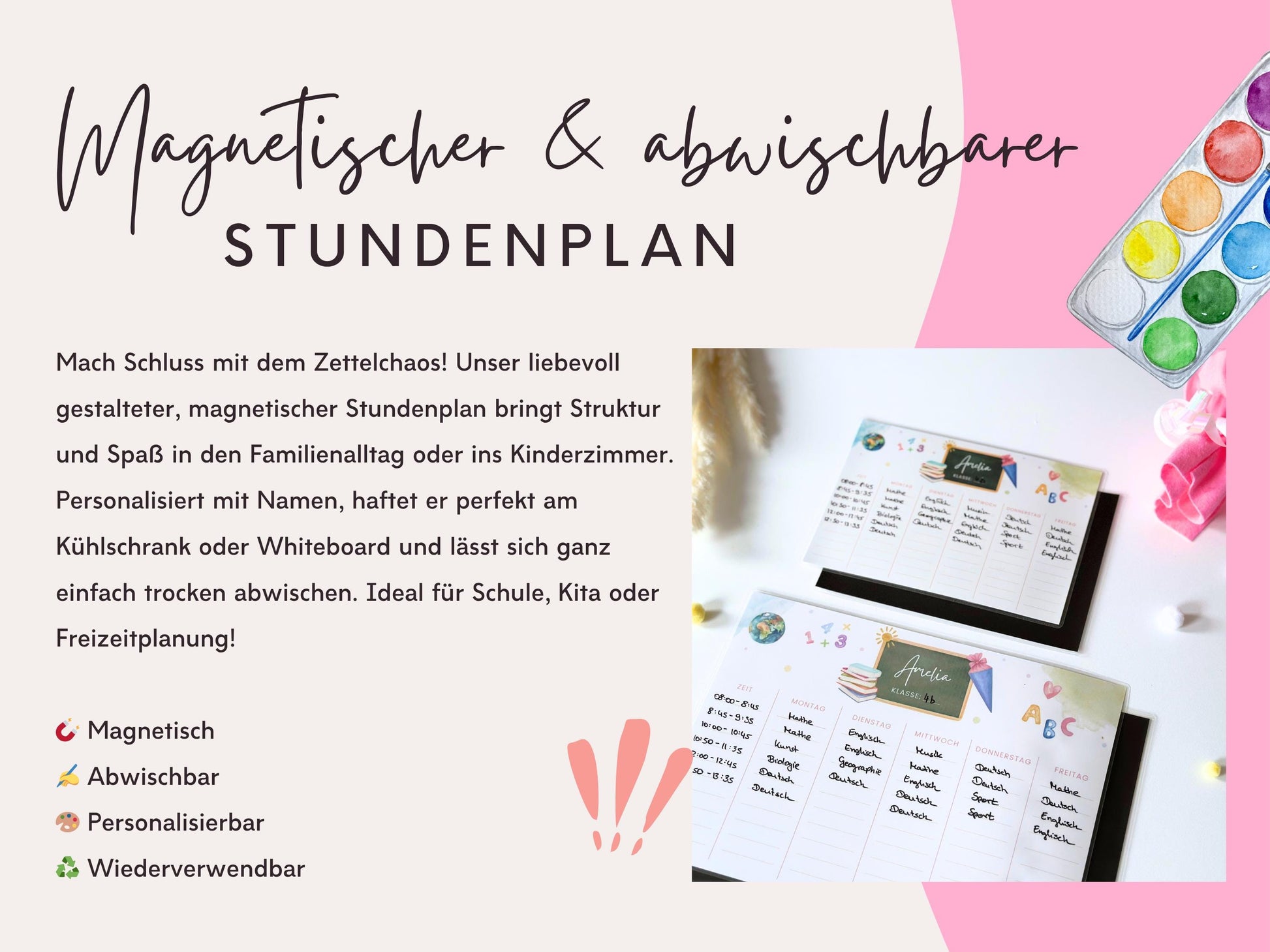 Personalisierter magnetischer Stundenplan für Kinder – abwischbar & wiederverwendbar – Einschulungsgeschenk in A4 oder A5