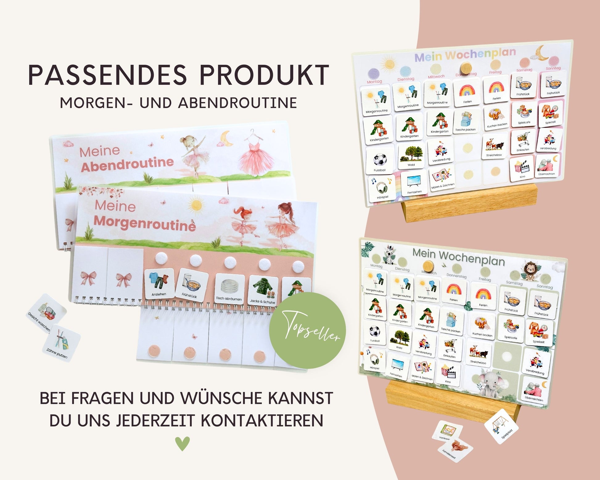 2️⃣ Spielerisches Lernen: Dein Kind erkennt auf einen Blick, welche Aufgabe als Nächstes ansteht – perfekt, um Selbstständigkeit und Tagesstruktur zu fördern.