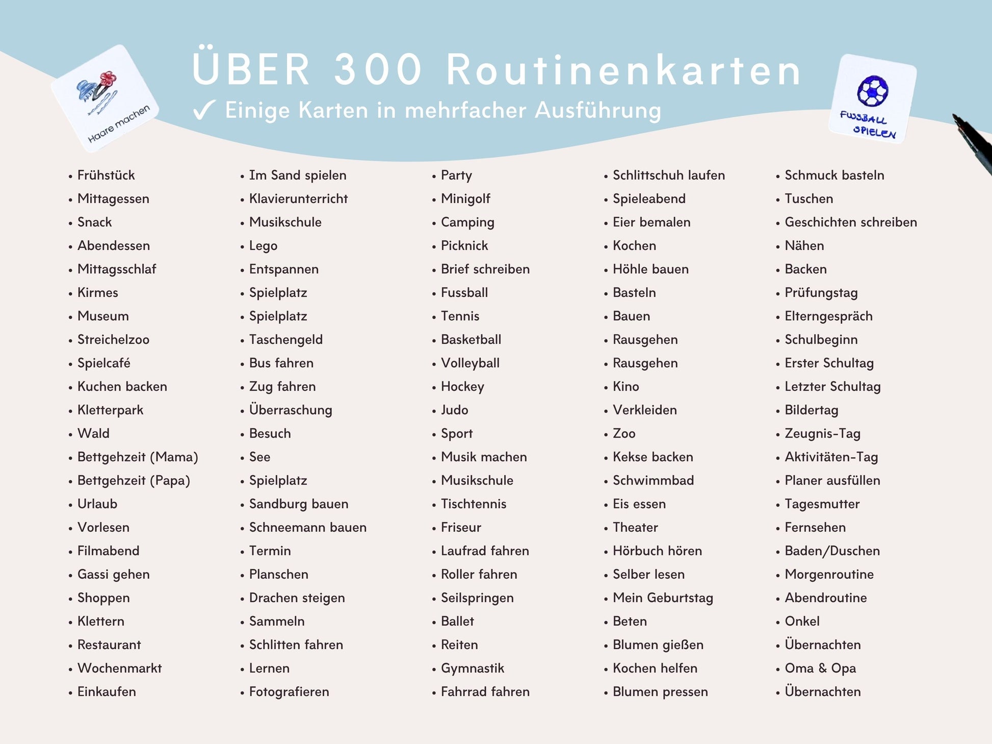 ✔ Über 300 Routinenkarten (gestanzt, mit Klettklebepunkten zum Befestigen)