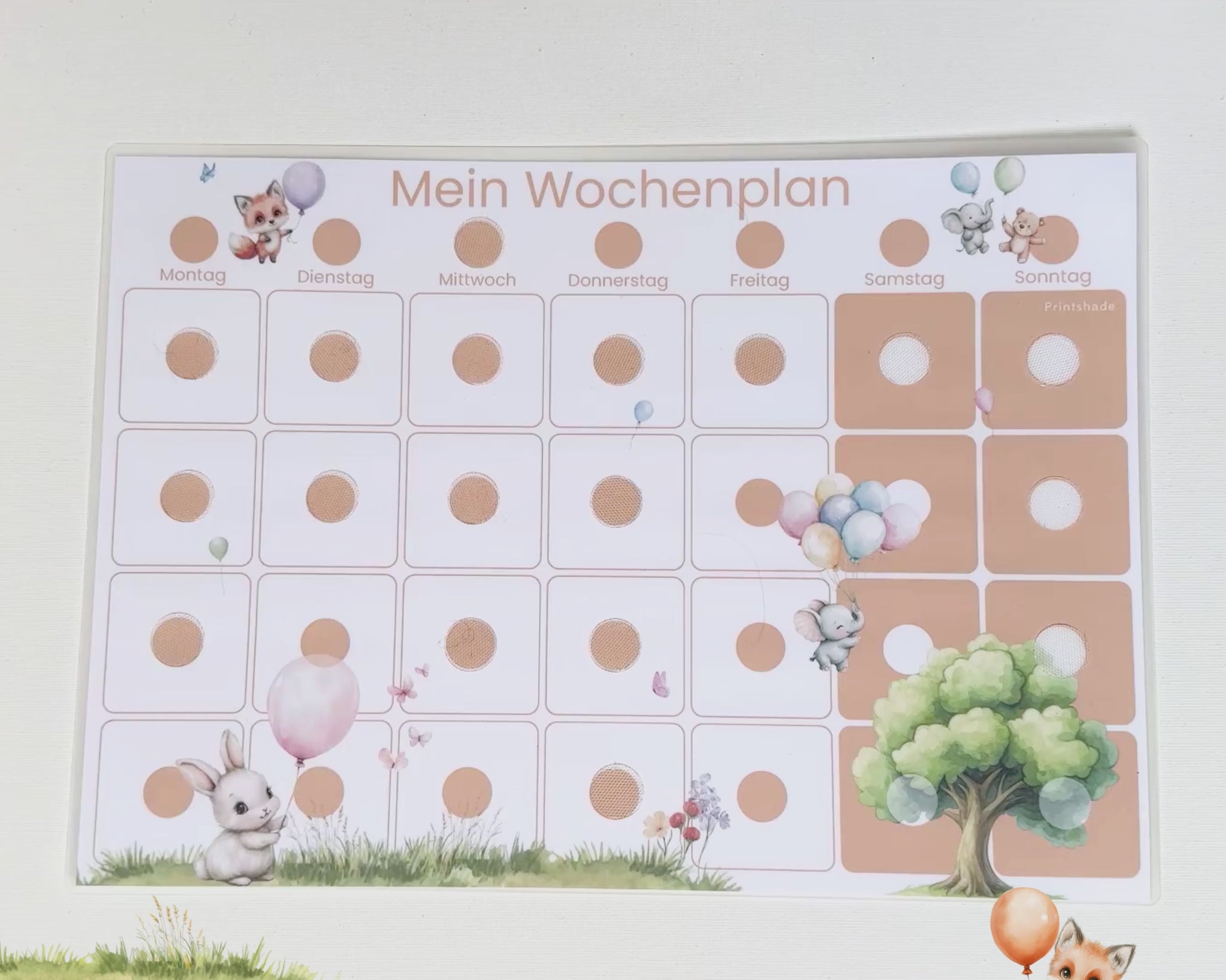 ✔ 1x Wochenplaner (laminiert, mit Klebeklettpunkte zum Befestigen)