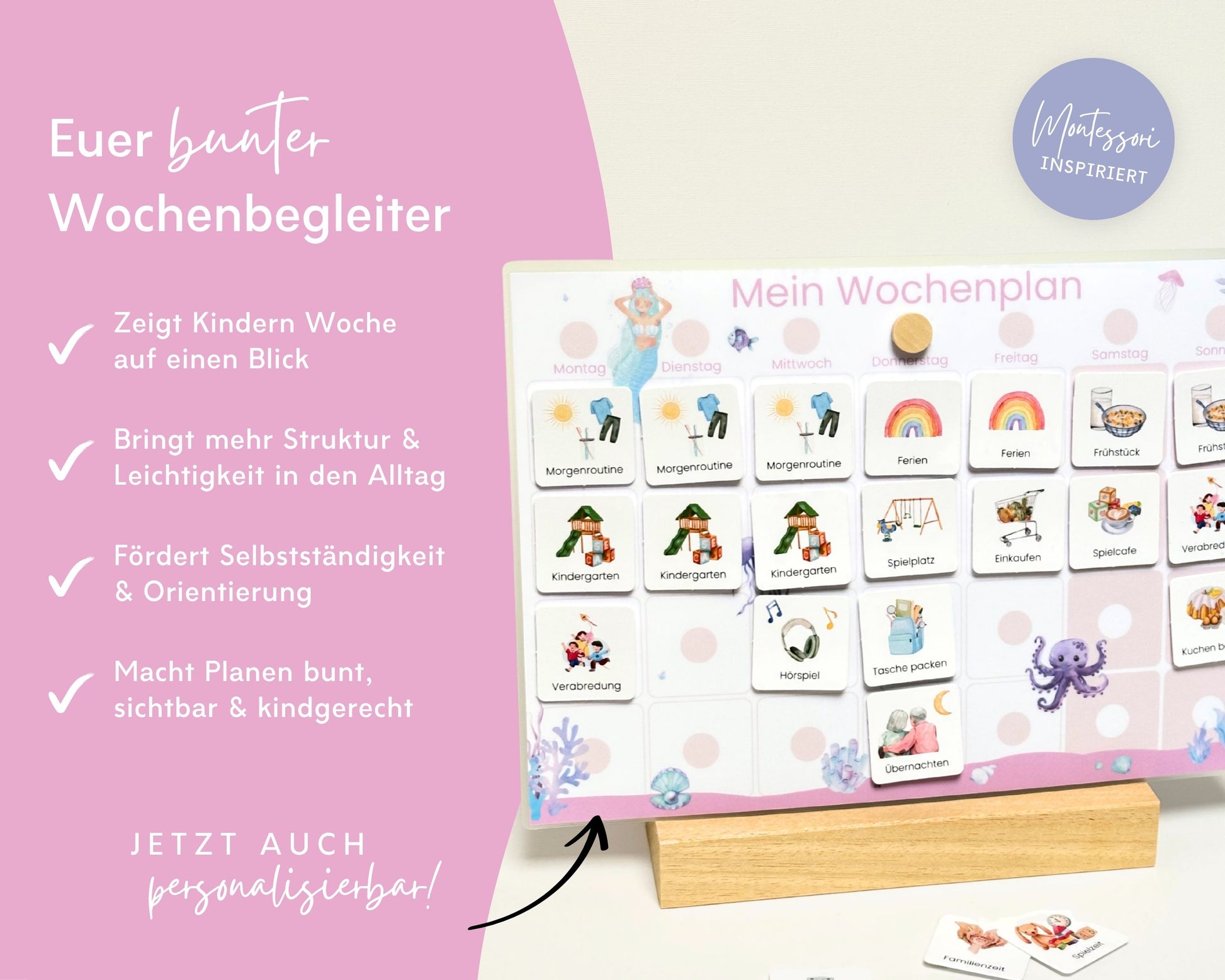 Wochenplaner inkl. Symbolkarten - Design MEERJUNFRAU PINK - Personalisierbar
