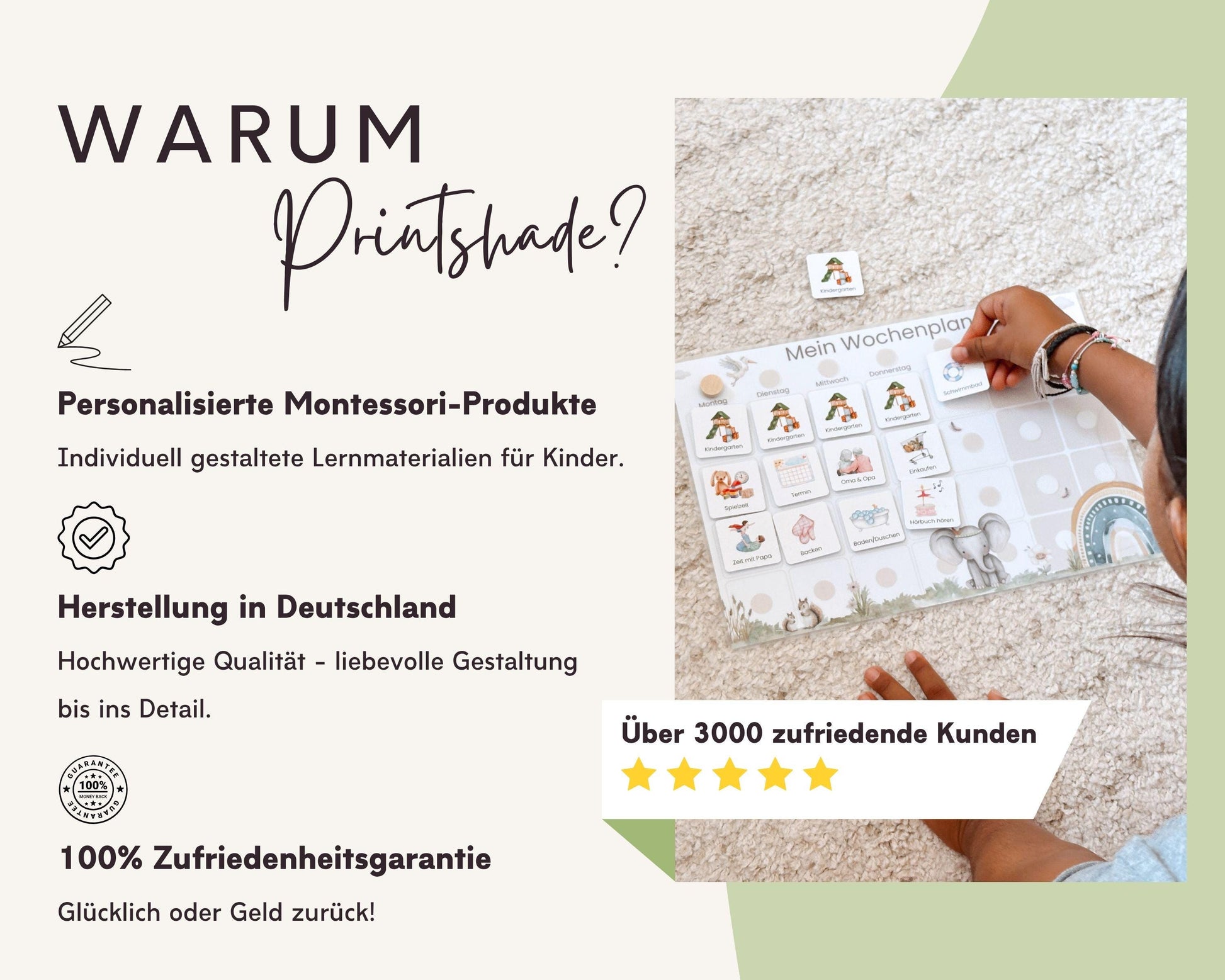 Gestalte den Alltag deines Kindes spielerisch und strukturiert – mit unserem Montessori-inspirierten Wochenplan! Die liebevollen, kindgerechten Illustrationen mit Tieren, Astronauten und Fahrzeugen verwandeln jede Aufgabe in ein kleines Abenteuer. Perfekt, um die Selbstständigkeit zu fördern und den Tagesablauf spielerisch zu organisieren. Ideal für Kindergarten- und Grundschulkinder!