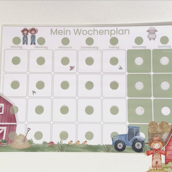 Bastel-Set: Montessori Mein Wochenplaner für Kinder TRAKTOR BAUERNHOF