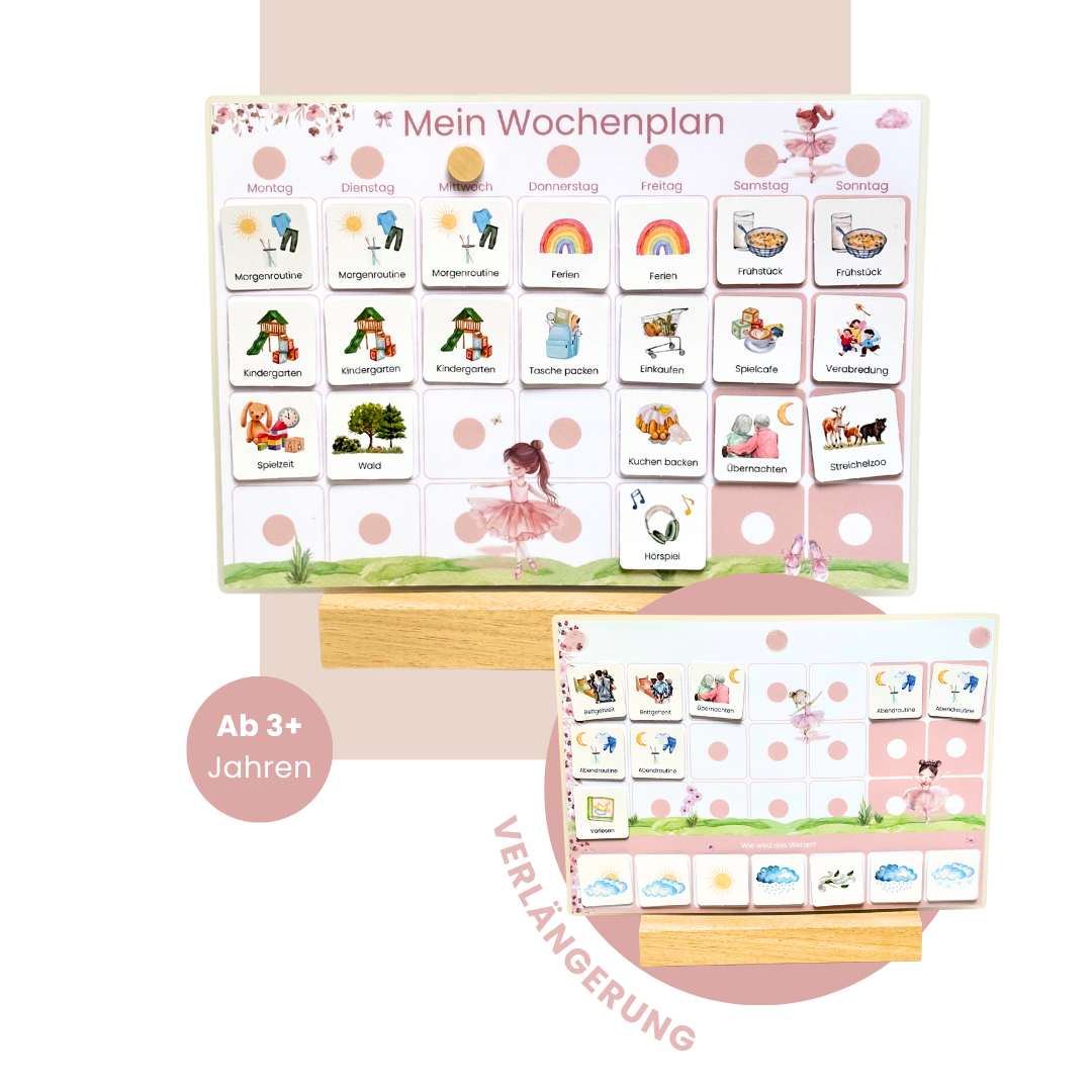 ✔ 1x laminiertes DIN A4-Blatt als Wochenplan-Verlängerung