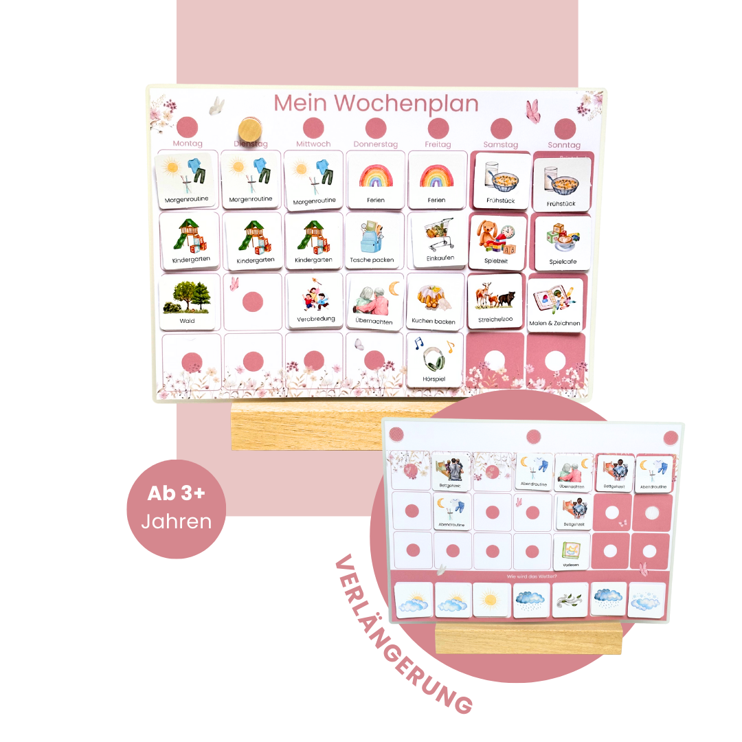 ✔ 1x laminiertes DIN A4-Blatt als Wochenplan-Verlängerung