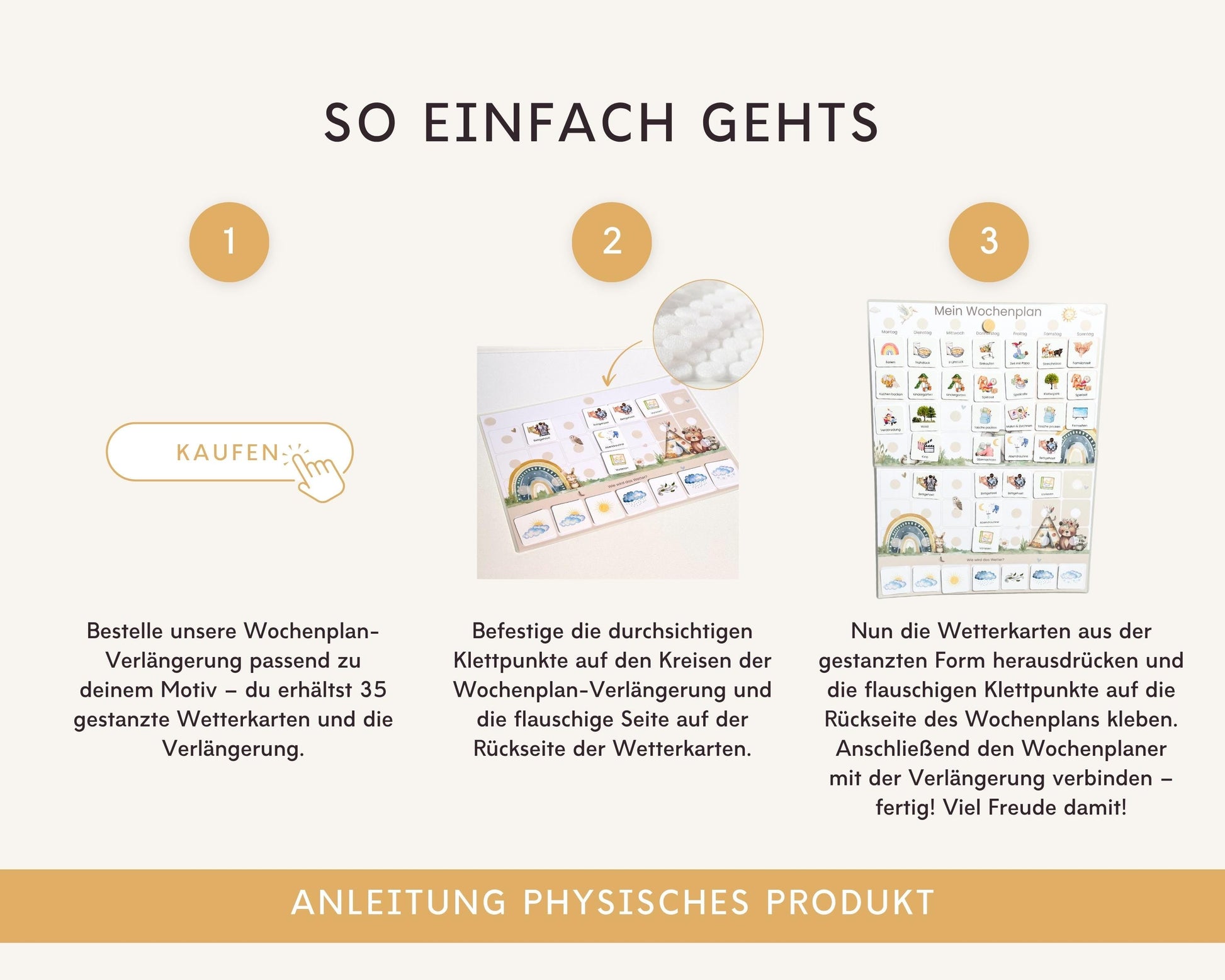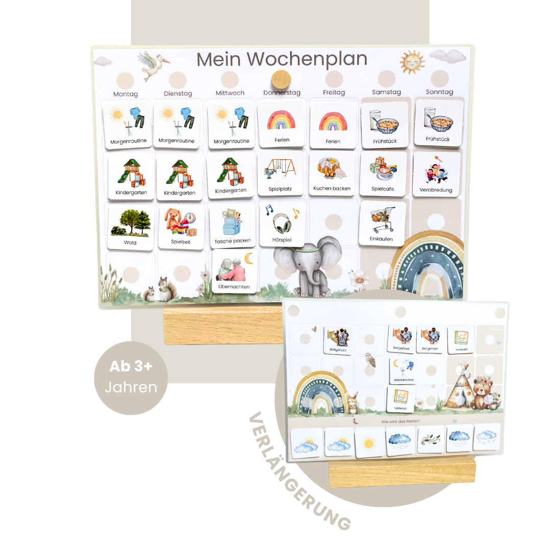 ✔ 1x laminiertes DIN A4-Blatt als Wochenplan-Verlängerung