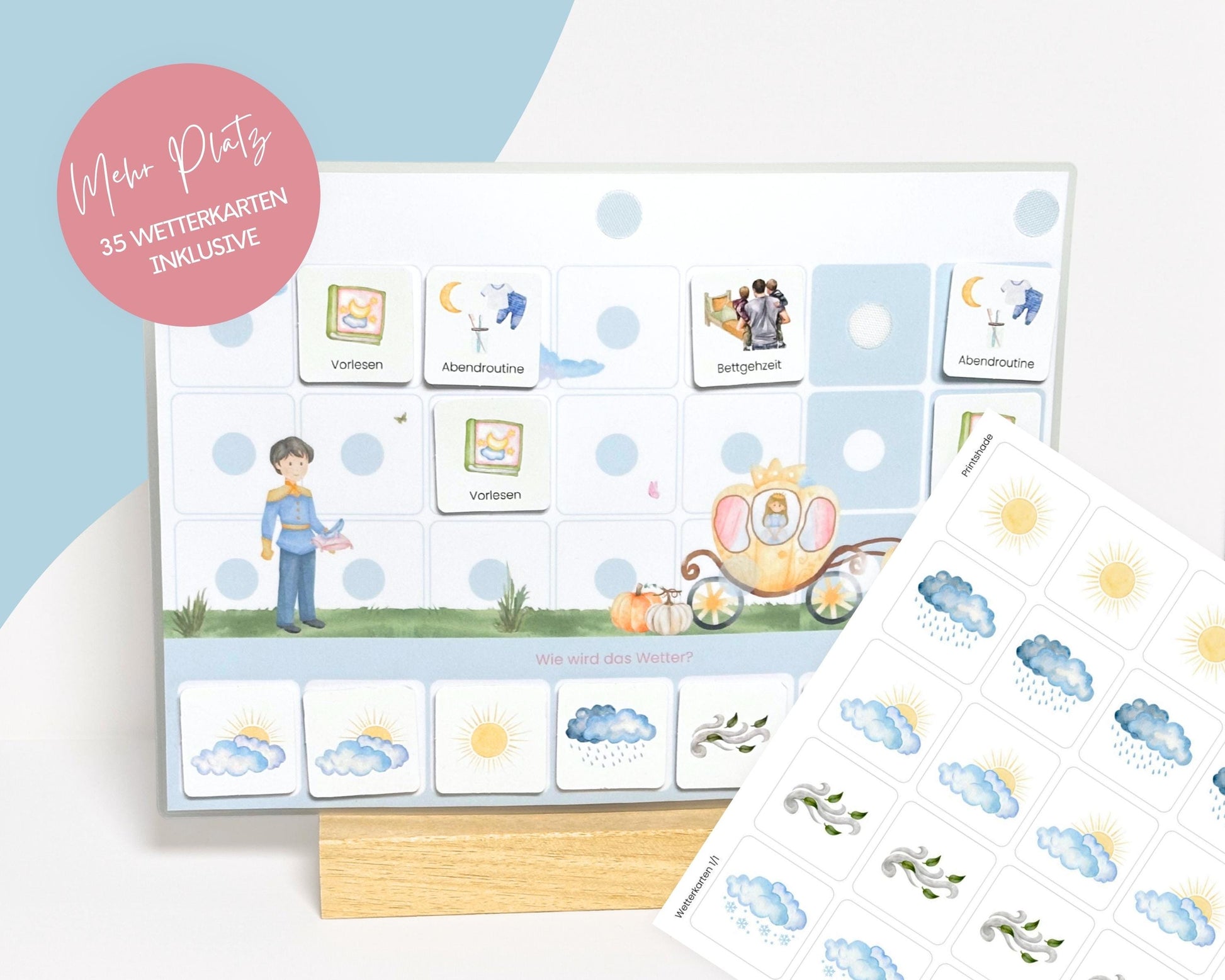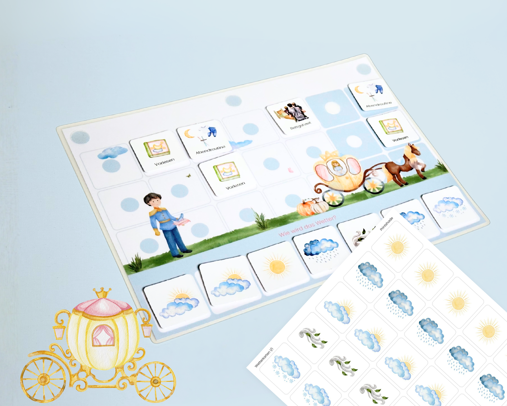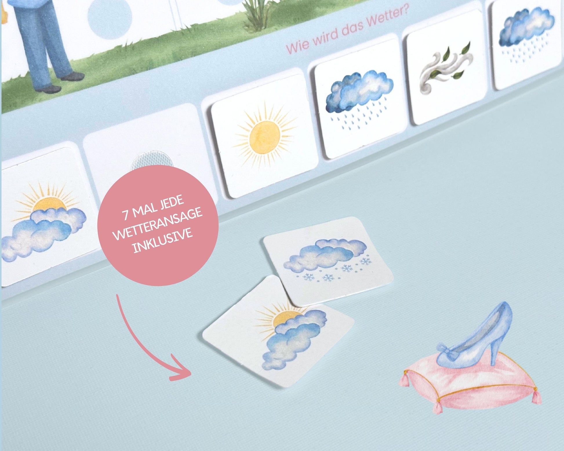 Wochenplan-Verlängerung PRINZESSIN CINDERELLA ROSA mit Wetteranzeige | 35 Wetterkarten + Klettpunkte | Ergänzungs-Set für Wochenplan Kinder