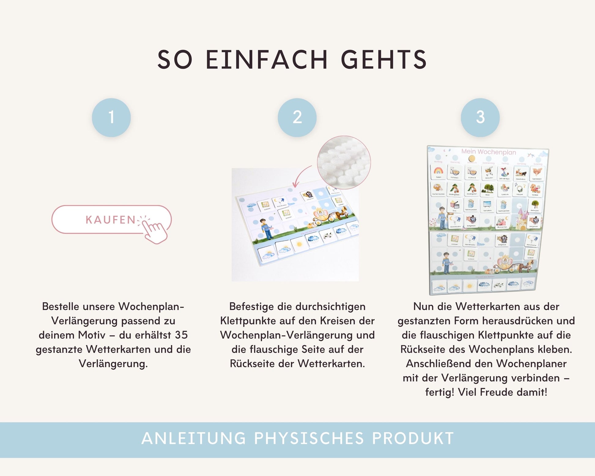 ✔ 1x laminiertes DIN A4-Blatt als Wochenplan-Verlängerung