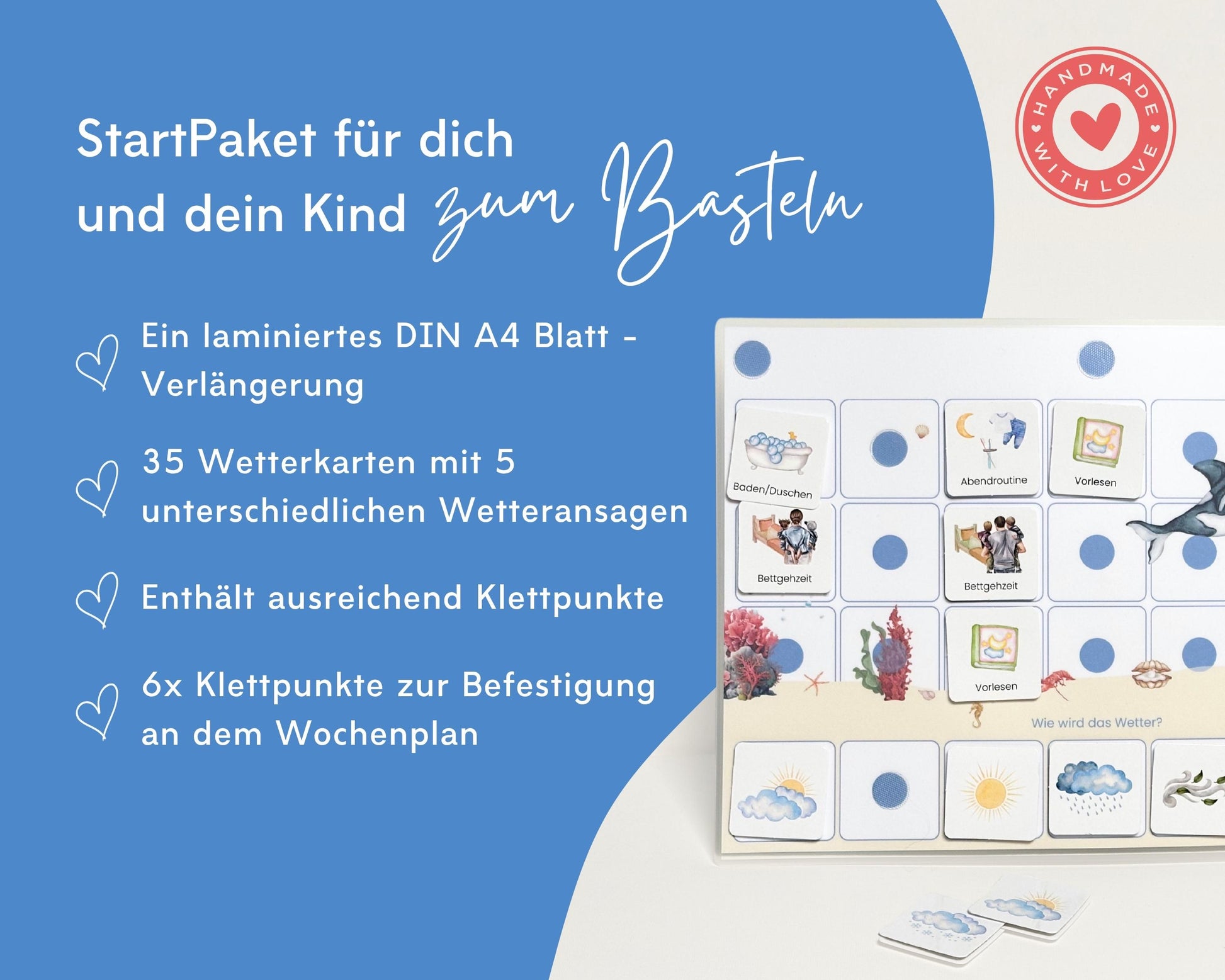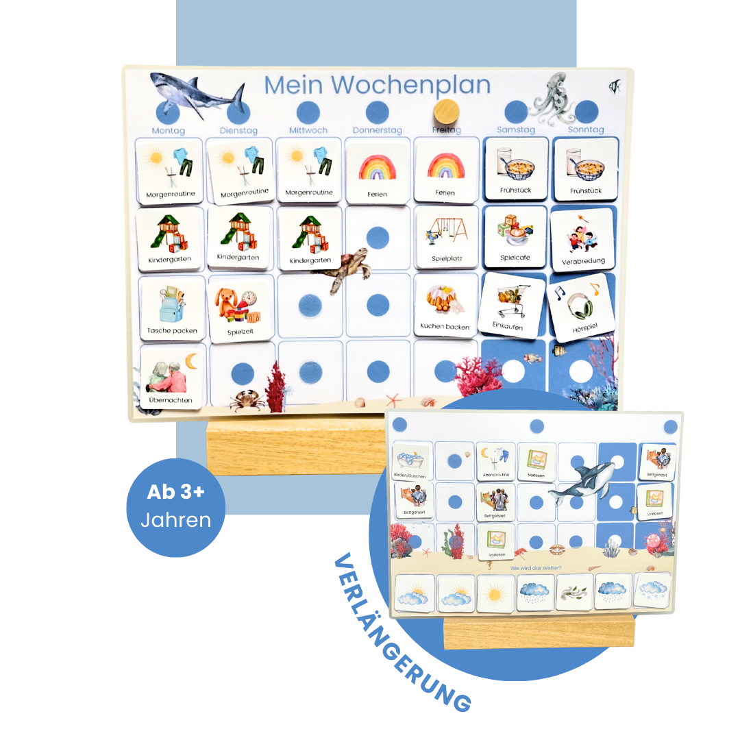 ✔ 1x laminiertes DIN A4-Blatt als Wochenplan-Verlängerung