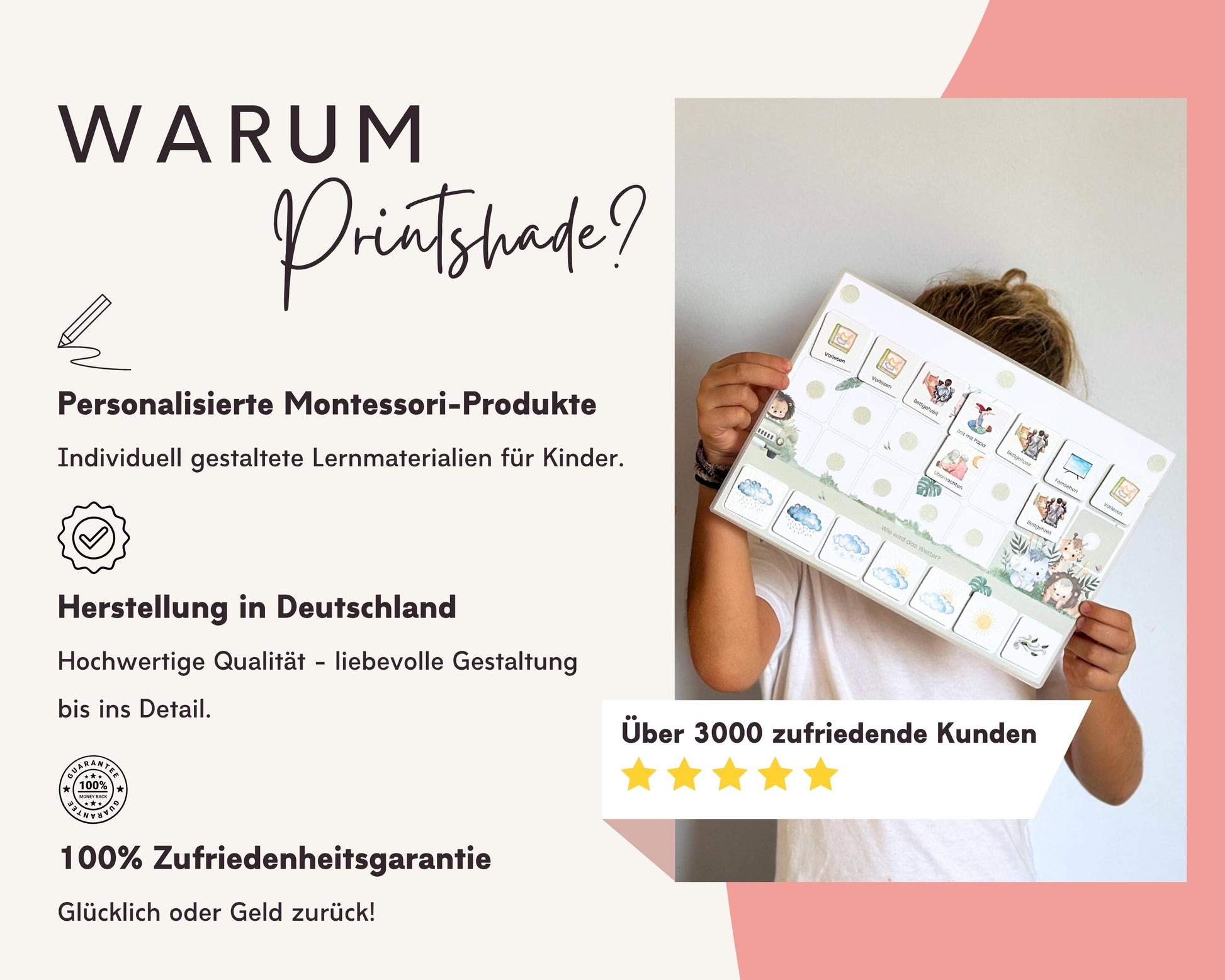 Unsere Produkte sind ideal ab ca. 2,5 bis 3 Jahren, wenn dein Kind beginnt, Zusammenhänge zu erkennen und erste Abläufe zu verstehen. Jedes Kind ist anders – du kannst also ganz individuell entscheiden, wann der richtige Zeitpunkt ist.